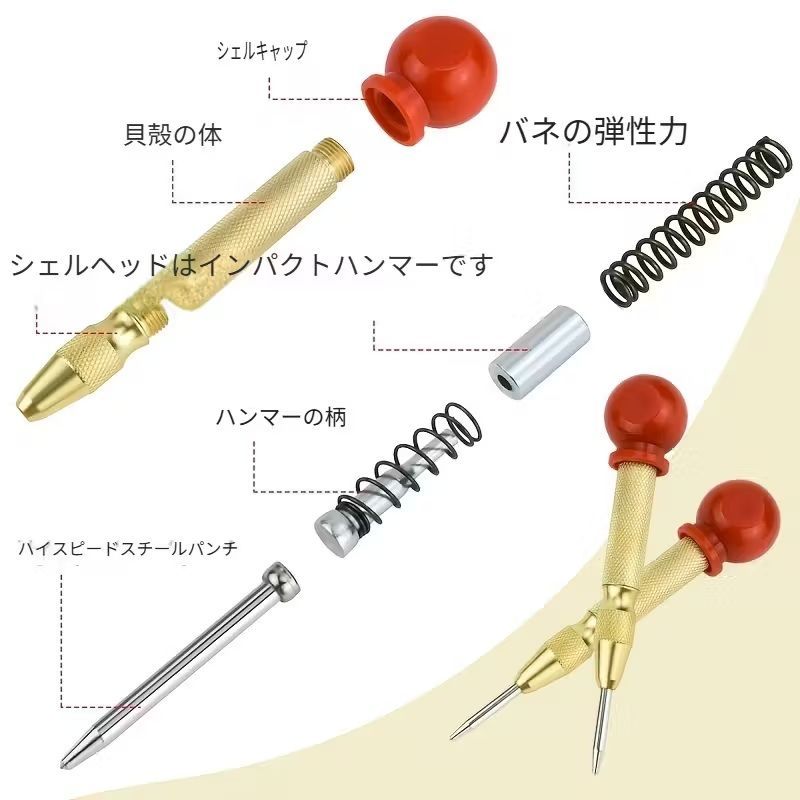 センターポンチ オートポンチ 穴あけ 目印 打刻 マーキング スプリング式 簡単 便利 ガラス 木材適用 木工 鉄工用品 グリップなし