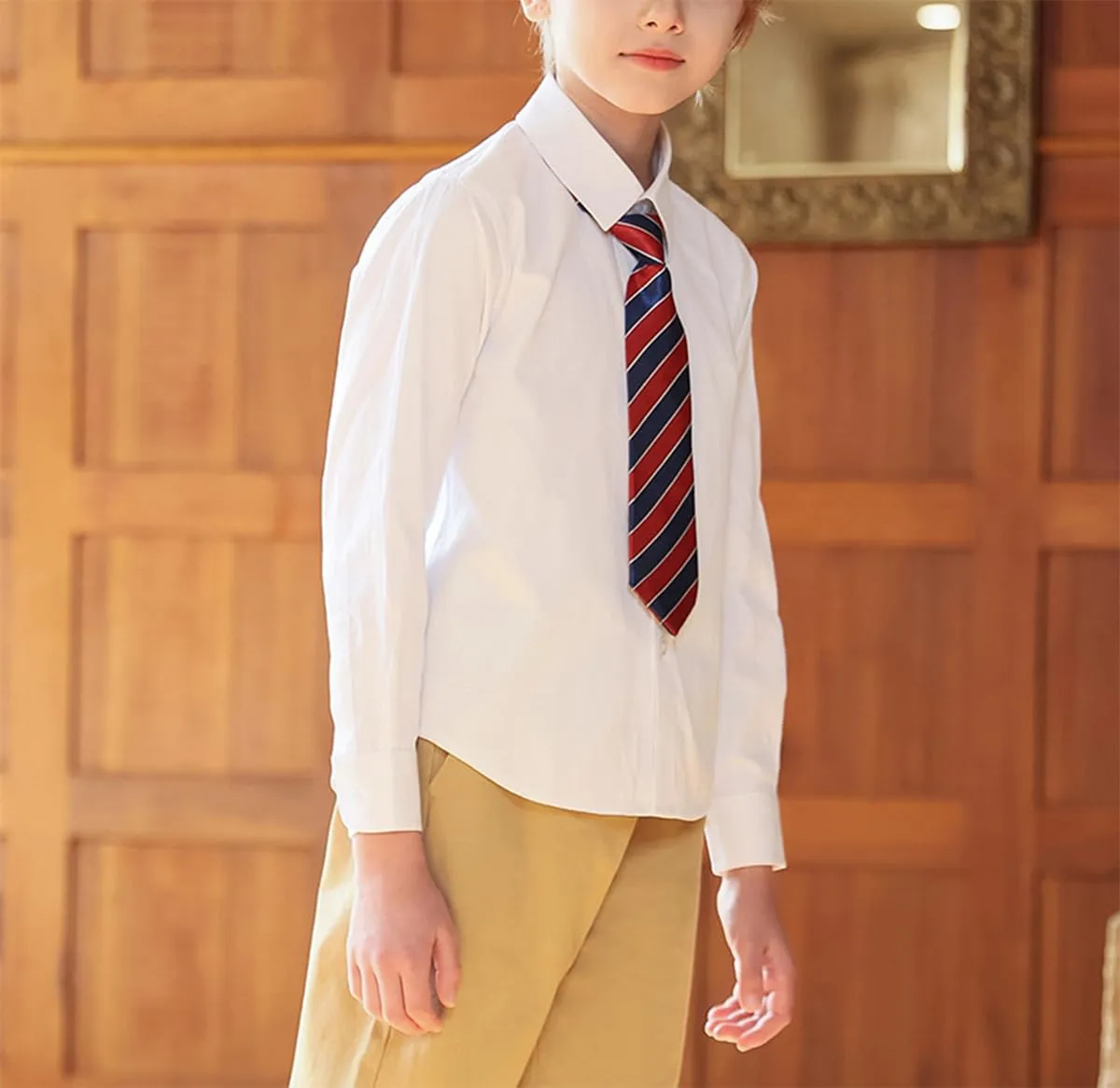 [Moli&Hani] 長袖シャツ 男の子 キッズ フォーマル 白シャツ 子供 綿素材 ホワイト ノーアイロン 発表会 紳士服 七五三 入学式 誕生日 入園式