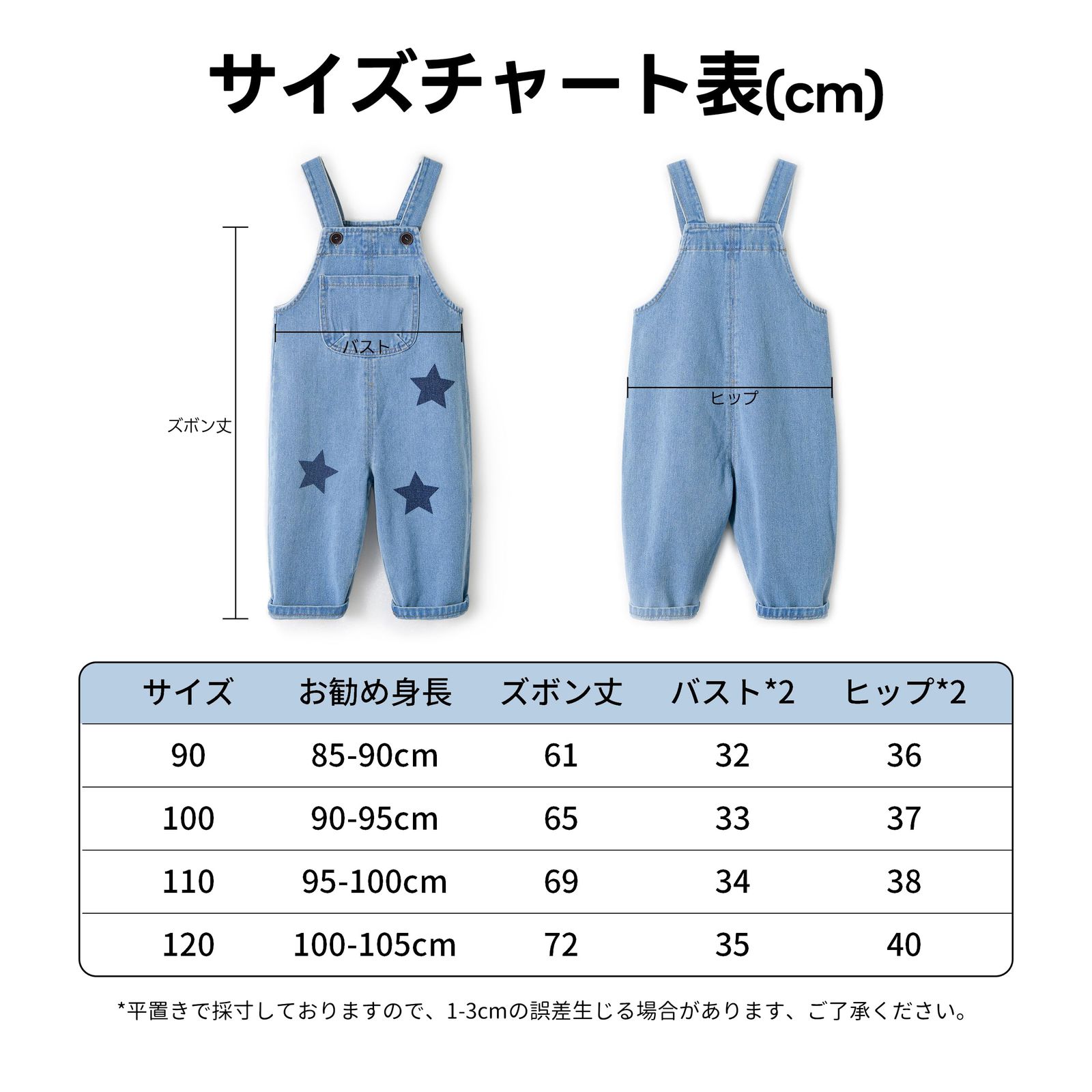 [Miipat] デニム サロペット キッズ ベビー オーバーオール 子供 オールインワン 女の子 男の子 ゆったり 可愛い おしゃれ 韓国 90-120cm