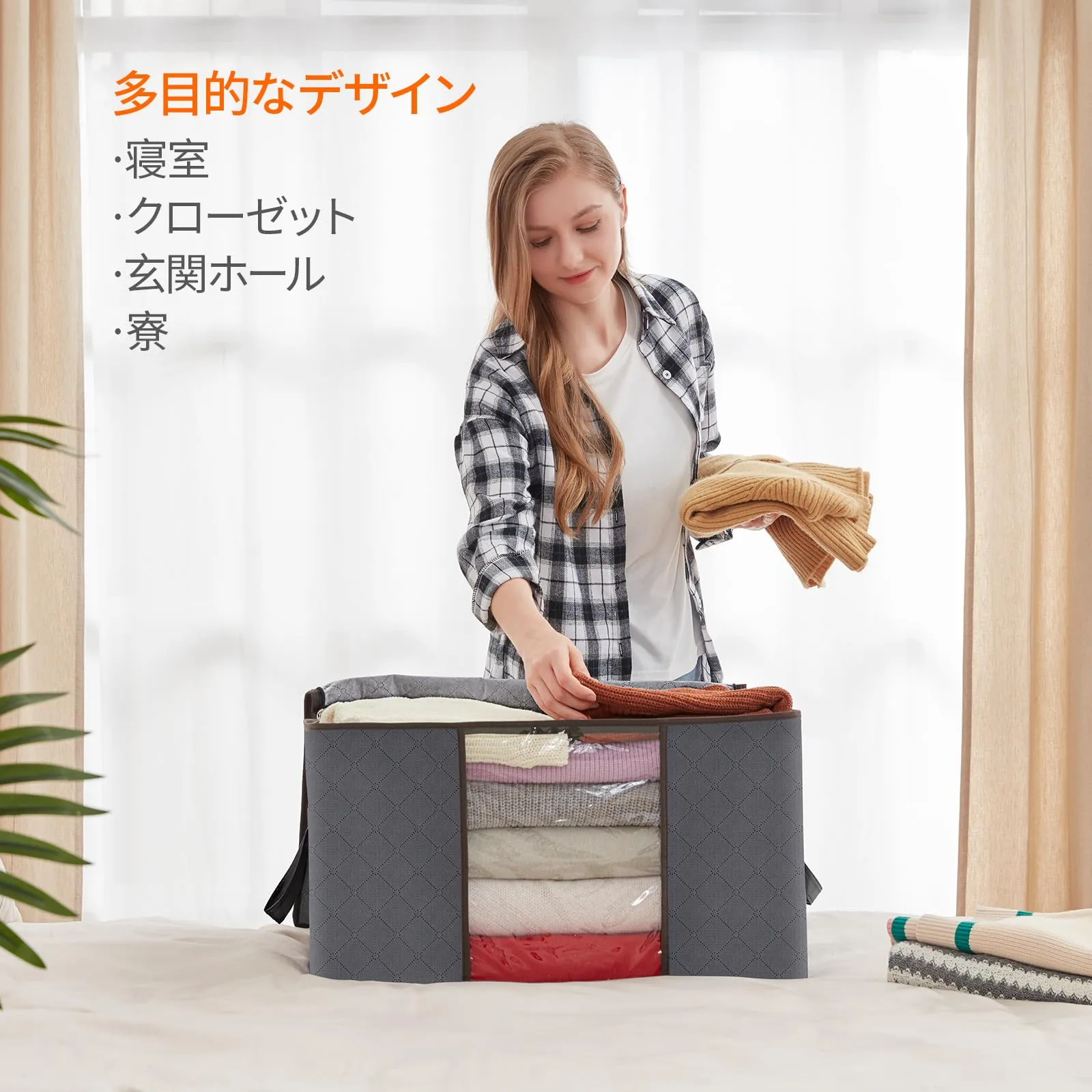プレミアム素材:この衣類収納バッグは、高品質で無臭の複合不織布素材で作られており、通気性を促進し、収納しているものを保護します。フロントのクリアな窓で、ストレージトートに収納されているものが素早く確認できます。
