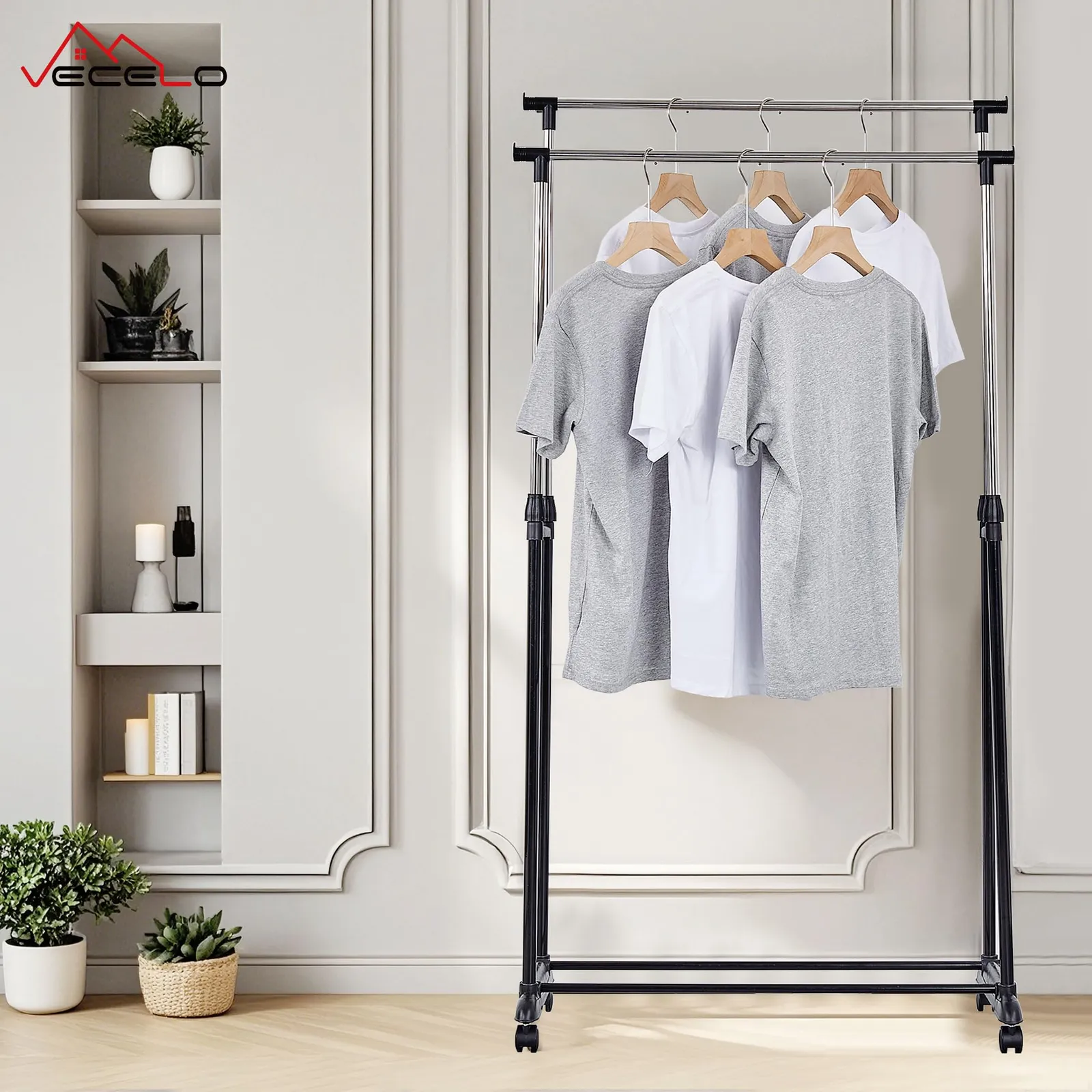 VECELO ハンガーラック 高さ伸縮パイプ