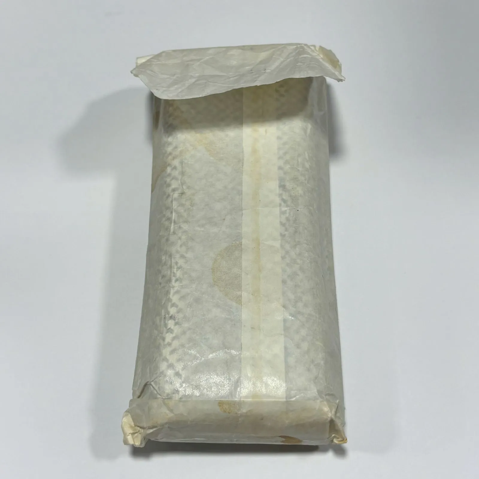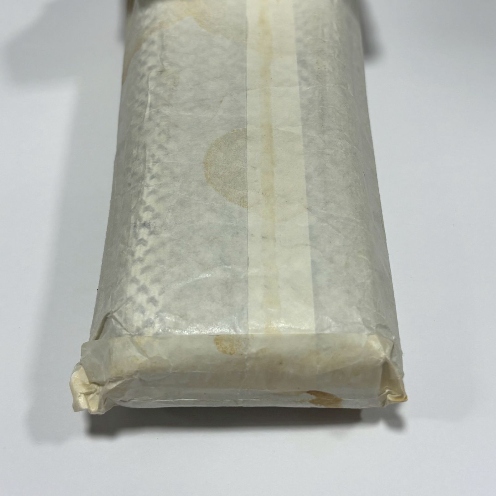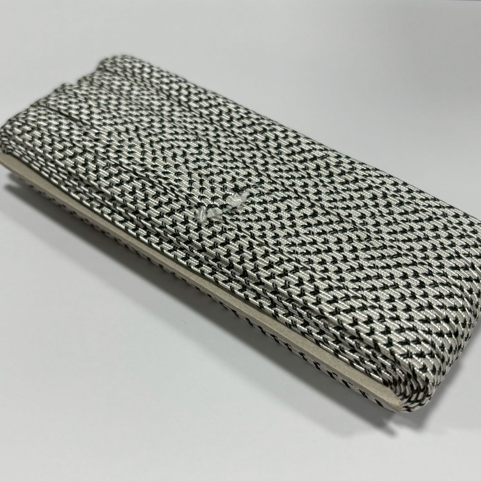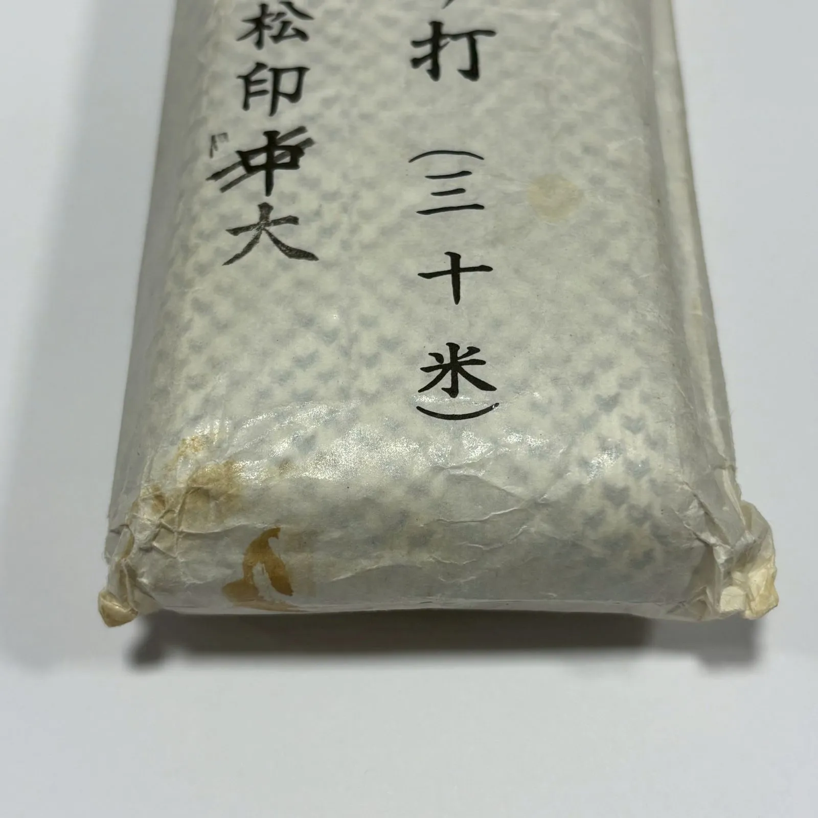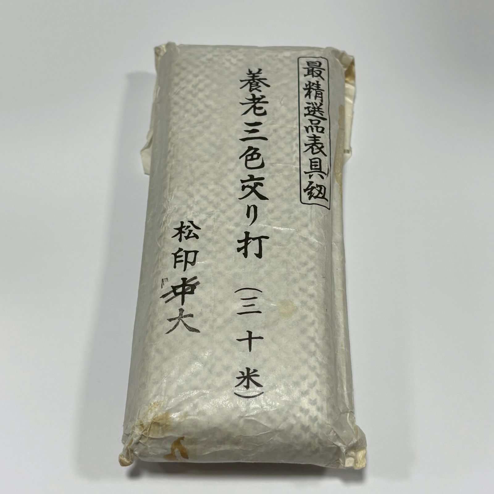 外側から確認した範囲では、紐本体に目立つ汚れや大きな傷みは見受けられませんが、保管期間が長いため、経年による多少の変化や見落としがある可能性もございます。