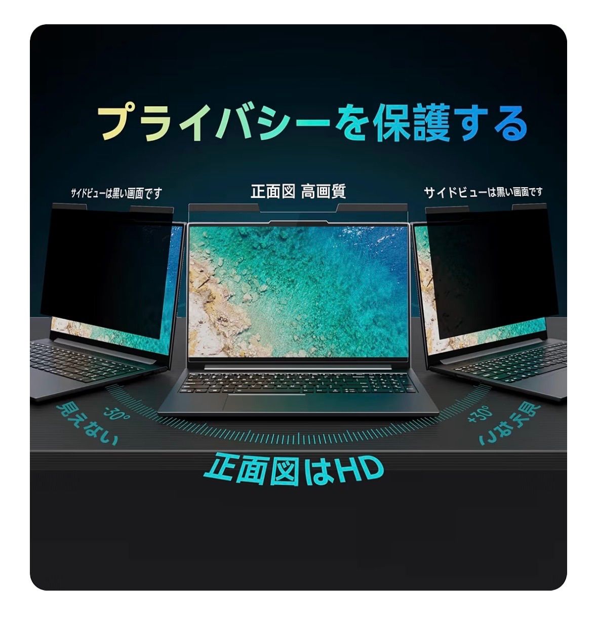 【驚異的なプライバシー保護】ノートパソコンのプライバシースクリーンの角度を5000回以上修正し、ノートパソコンの左右30°外の視界をフィルタリングできるため、パソコンのデータが覗き見されたり、公共の場でデータが公開されたりしないことを保証できます。 ご注意:13.3インチのスクリーンプロテクターは、左右からの視界を防ぎますが、どんなに離れていても正面からの視界は防ぎません。