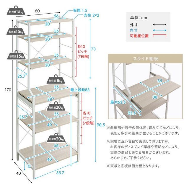 商品名:さわやかな 調節可能スライド棚付きレンジラック6段