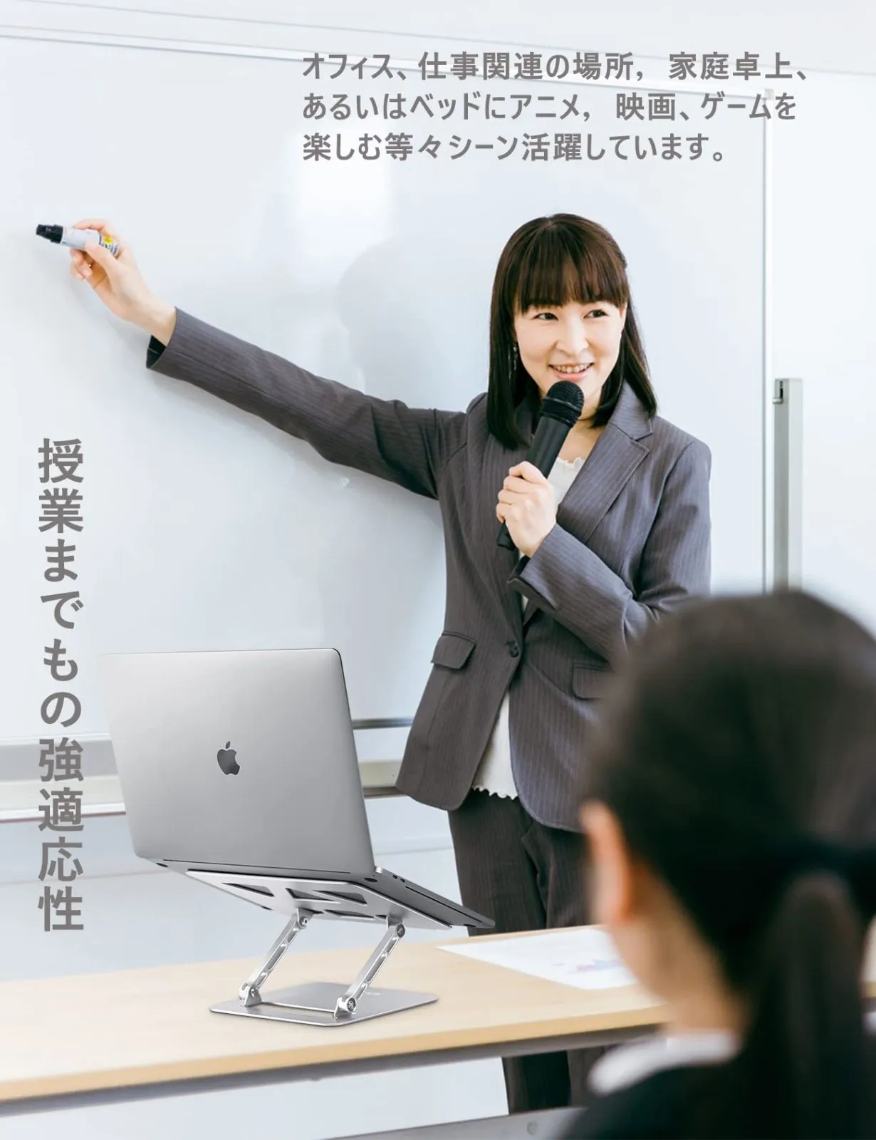 【角度調整可能&人間工学&無段階高度】人間工学デザインにより、高度と角度を無段階調整可能です。PC作業やタブレット用途等、お好みのまま、適当な高さやアングルを調整し、在宅ワークでも楽に。ノートパソコンスタンドを使用すると、パソコンと人の視線は一致し、それと姿勢が正しくなり、背筋が伸び、長い間のデスクトップ作業で、人の首と肩に負担を軽くでき、猫背や腰痛など有効に防止できます。