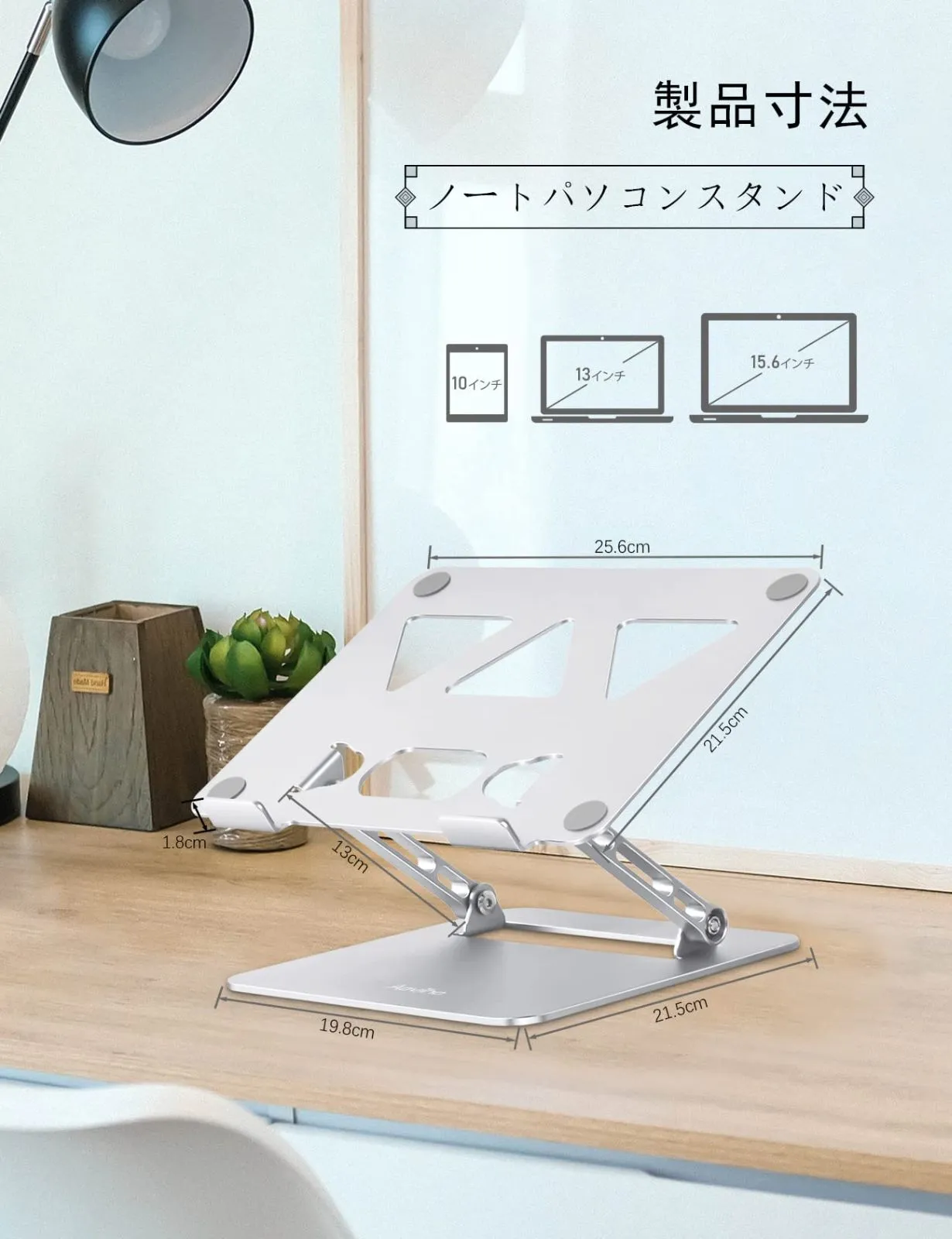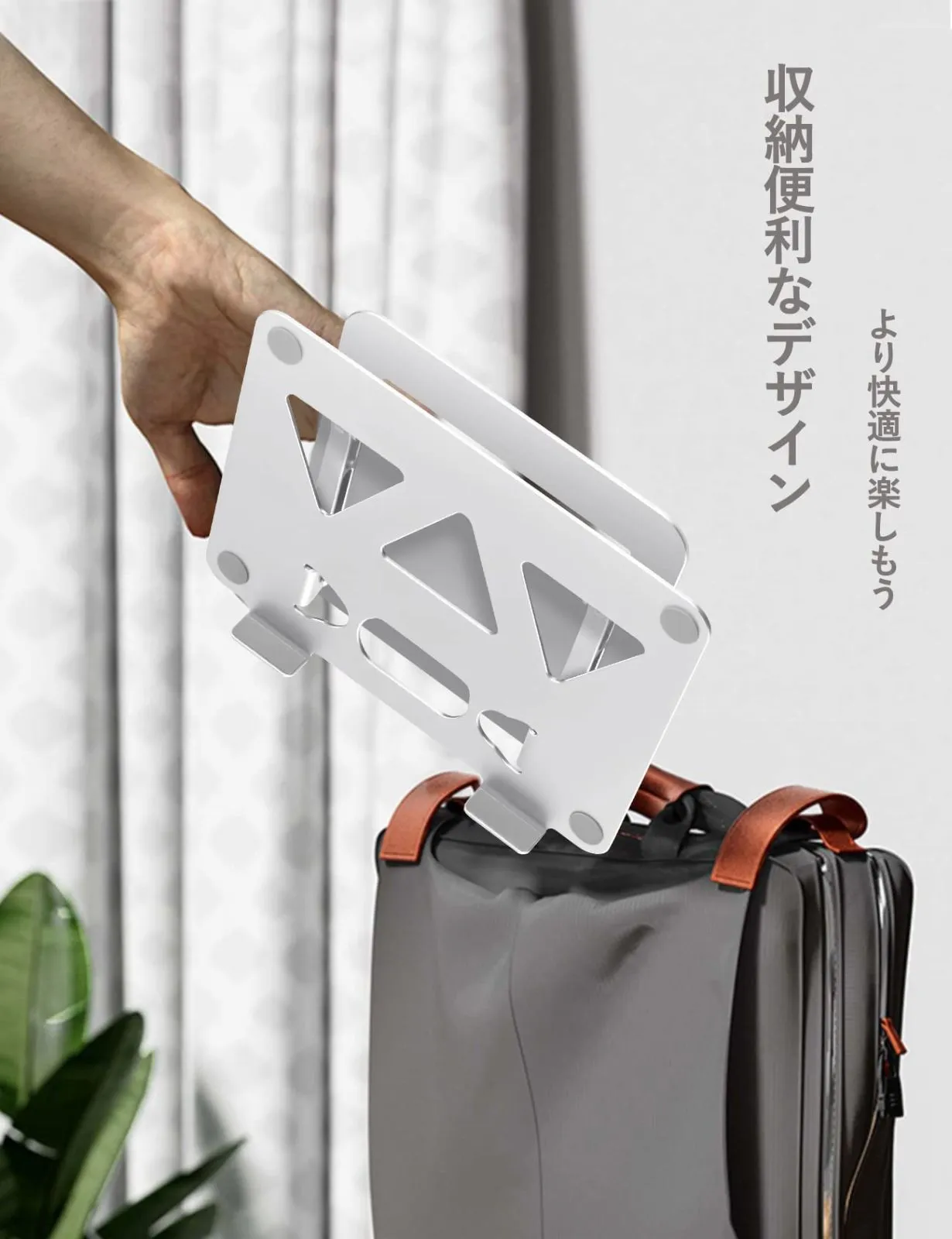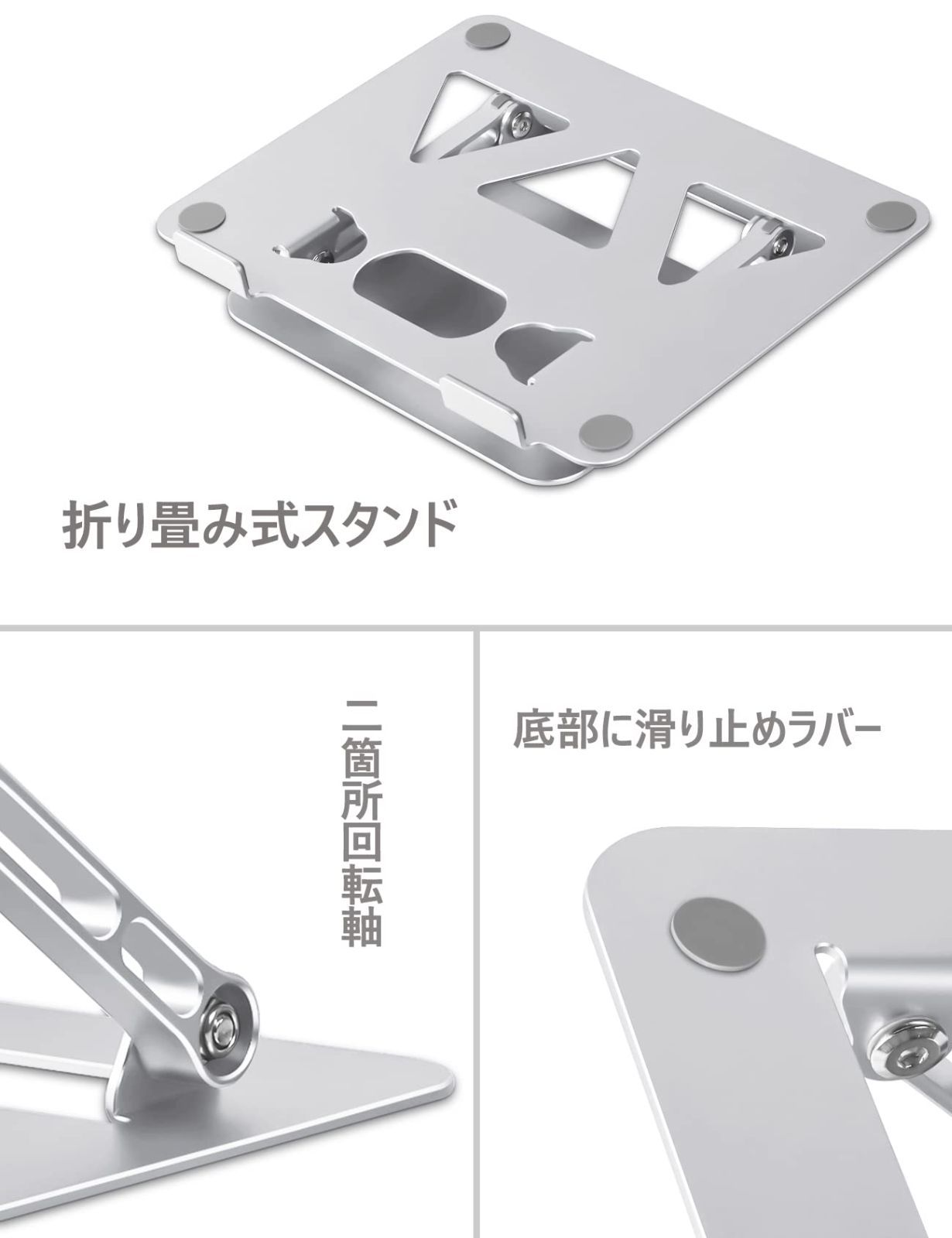 【持ち運び&収納便利&省スペース】弊社のノートパソコンスタンドは折り畳み式なので、二箇所の回転軸を折と、外出や出張等々に持ち運んで使用することができます。14インチのカバンにいれても平気です。スタンドの底部にキーボードなどが収納でき、省スペースを有効に活用されます。