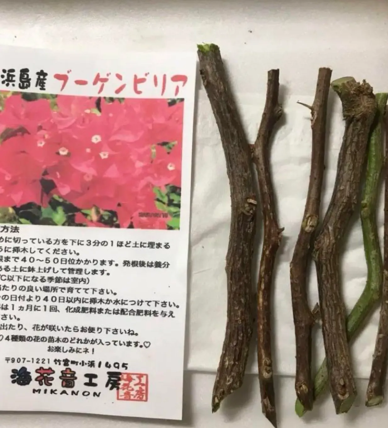 届いたら水に付けて、日当たりの良い室内で、挿し木して下さい。