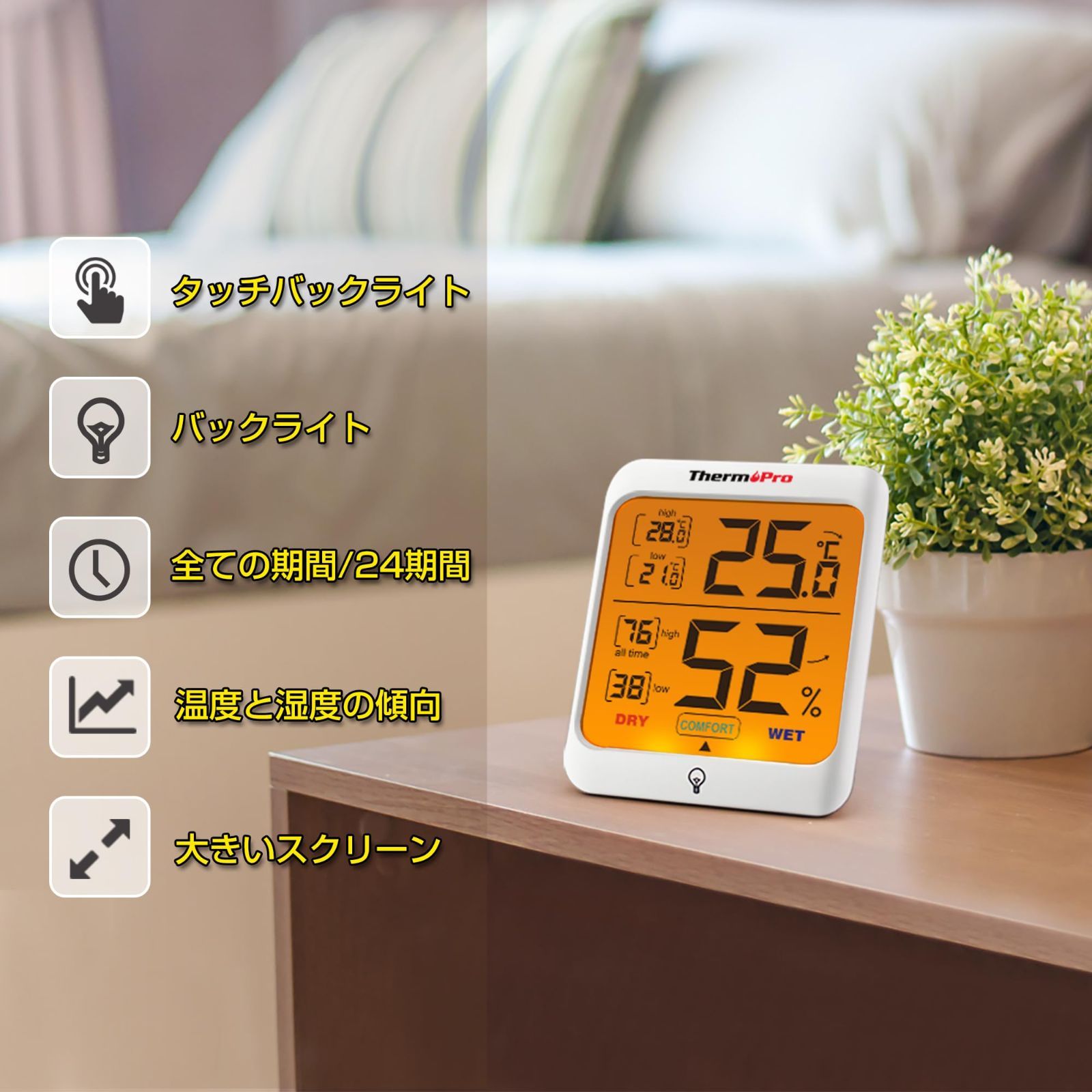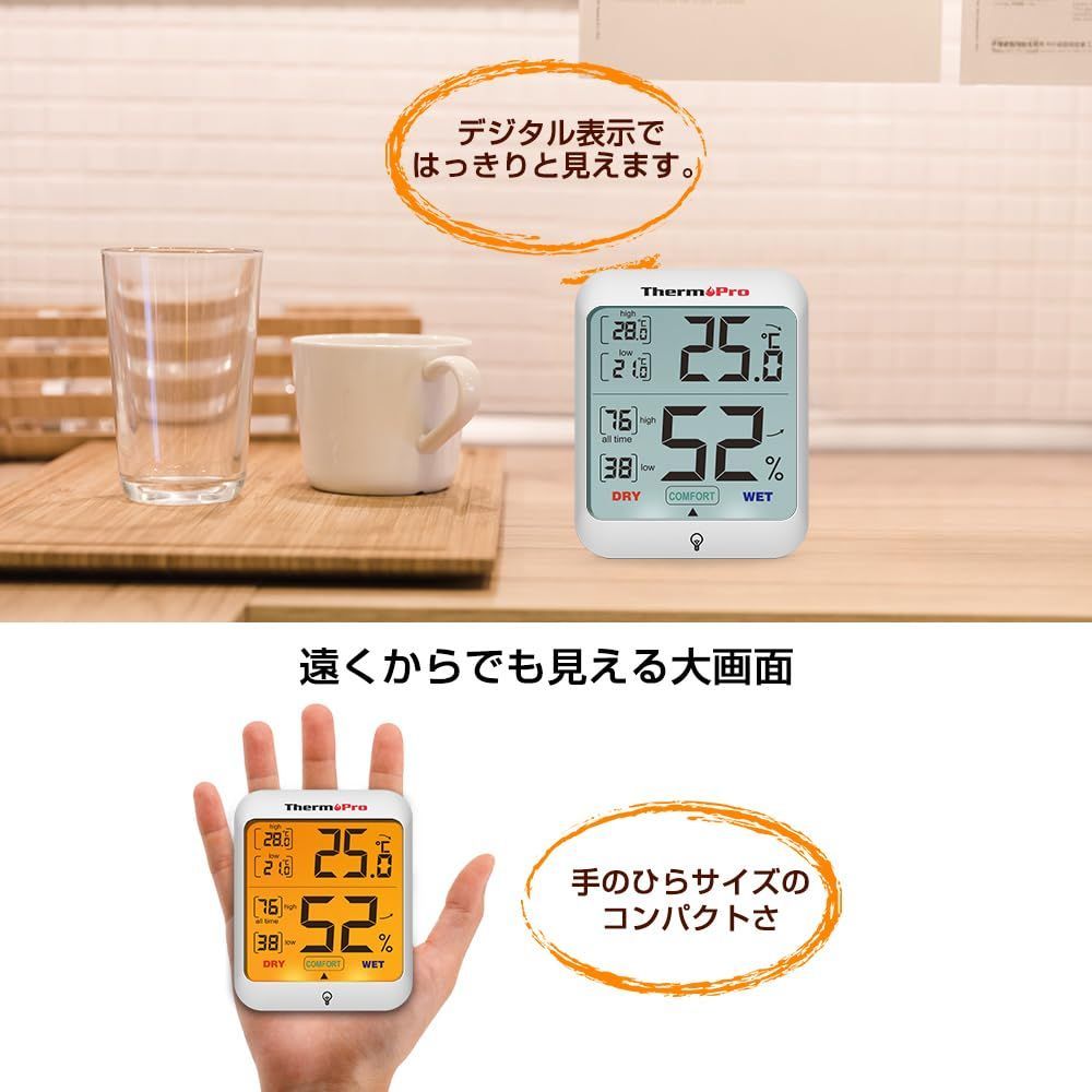 ThermoProサーモプロ 温湿度計 室内温度計デジタル キャンプ温度計 最高最低温湿度値表示 LCDバックライト機能付き2パックTP53