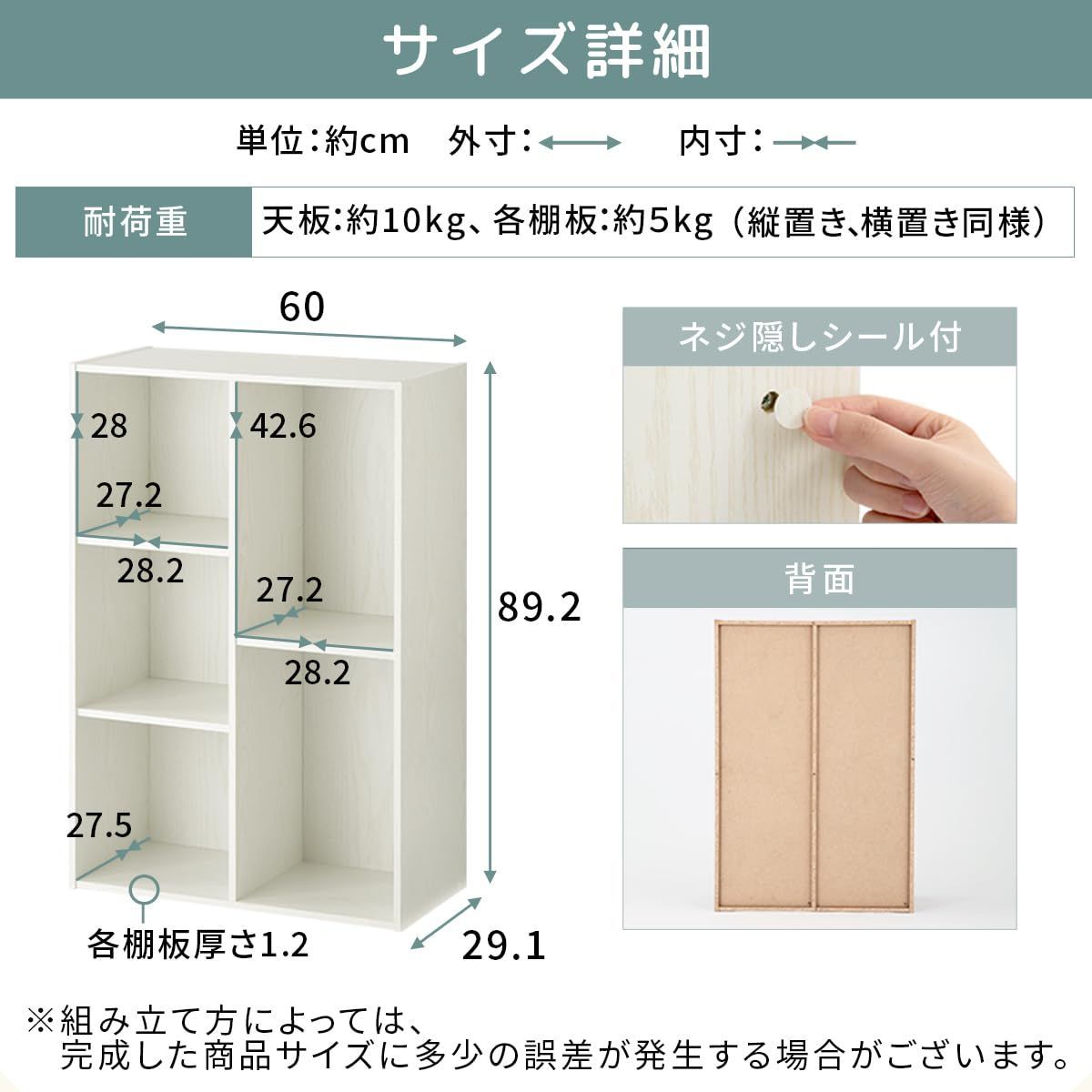耐荷重 天板:約10kg 各棚板:約5kg 全体:約25kg / 背面化粧:無し / 必要工具:プラスドライバー ※必要工具は付属しませんので別途ご用意ください。
