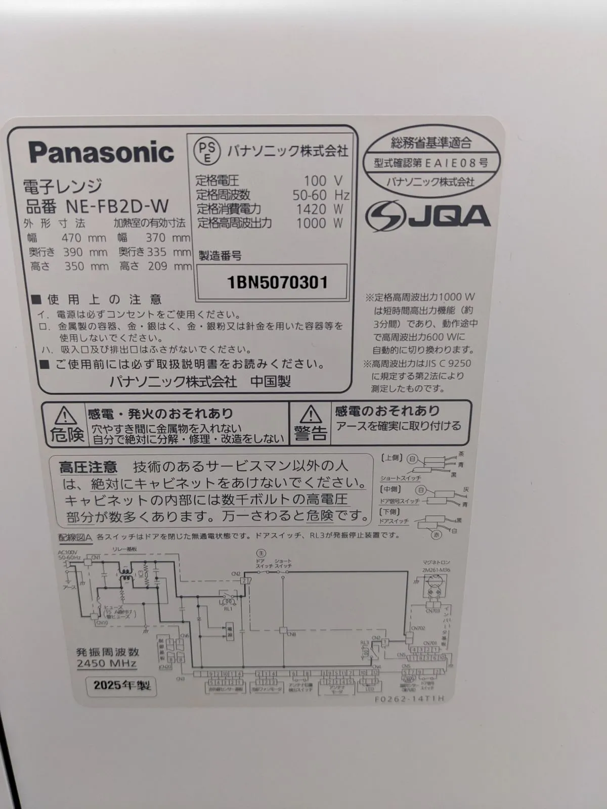 ※高周波出力1000Wは短時間高出力機能(最大3分)であり、調理中自動的に600Wに切り換わります。