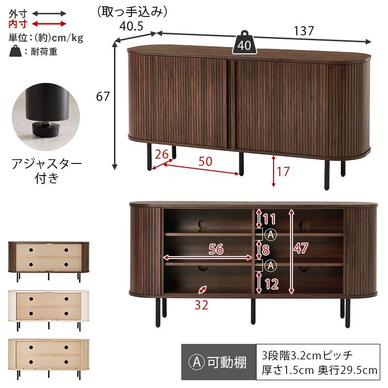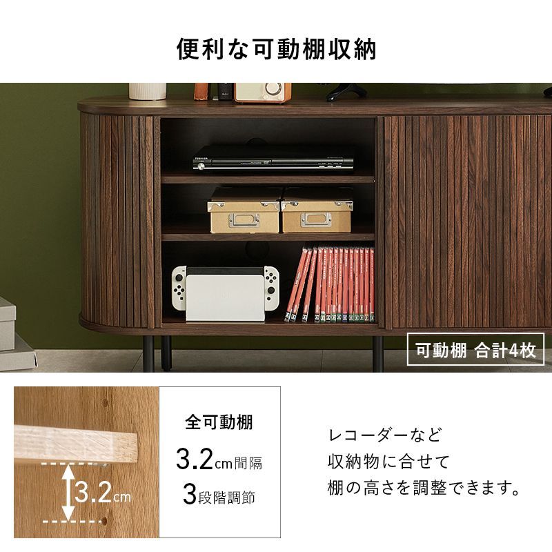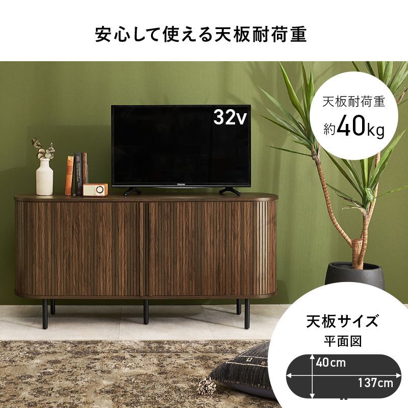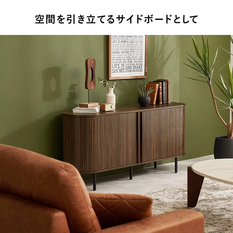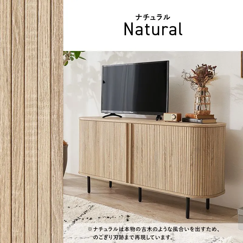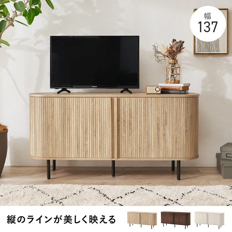 縦のラインとサイドの曲線が美しいタンブール扉のハイタイプテレビ台。扉の開閉に場所を取らず、すっきりとした脚高デザインもポイントです。サイドボード、キャビネット収納としても使用可能