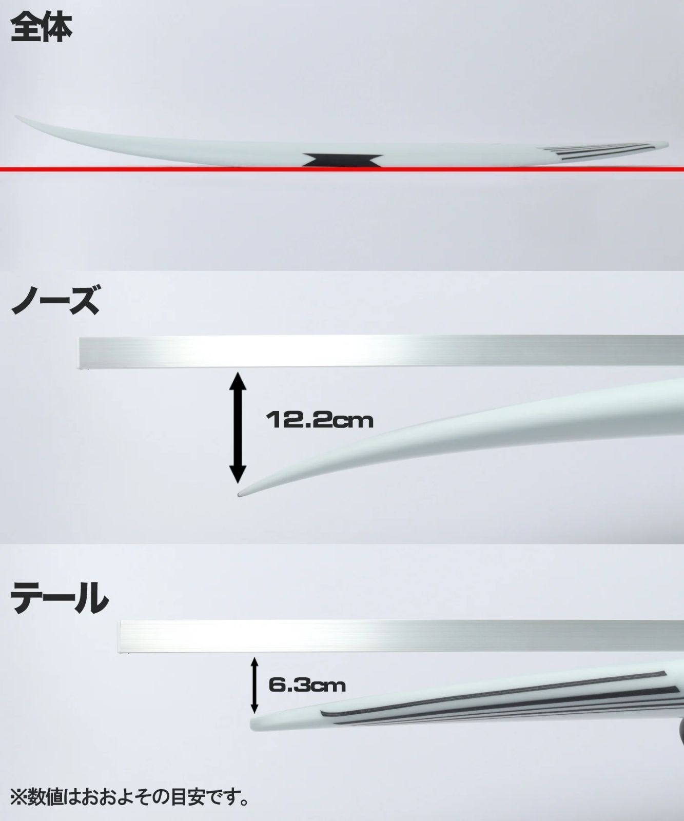 「レイズ・モデル」は、日本のさまざまな波に合わせてデザインされたサーフボードです。