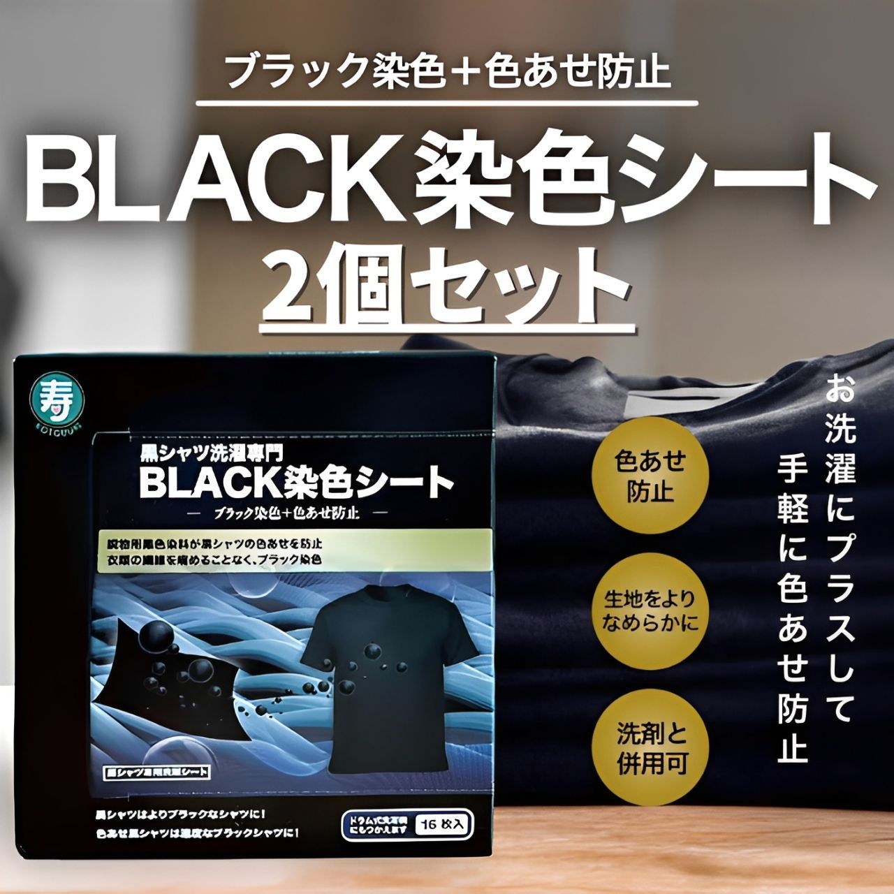 黒シャツのお洗濯に安心をプラス~繊維用黒色染料が黒シャツの色あせを防止!衣類の繊維を痛めることなく、ブラック染色!黒シャツはよりブラックなシャツに!色あせ黒シャツは適度なブラックシャツに!