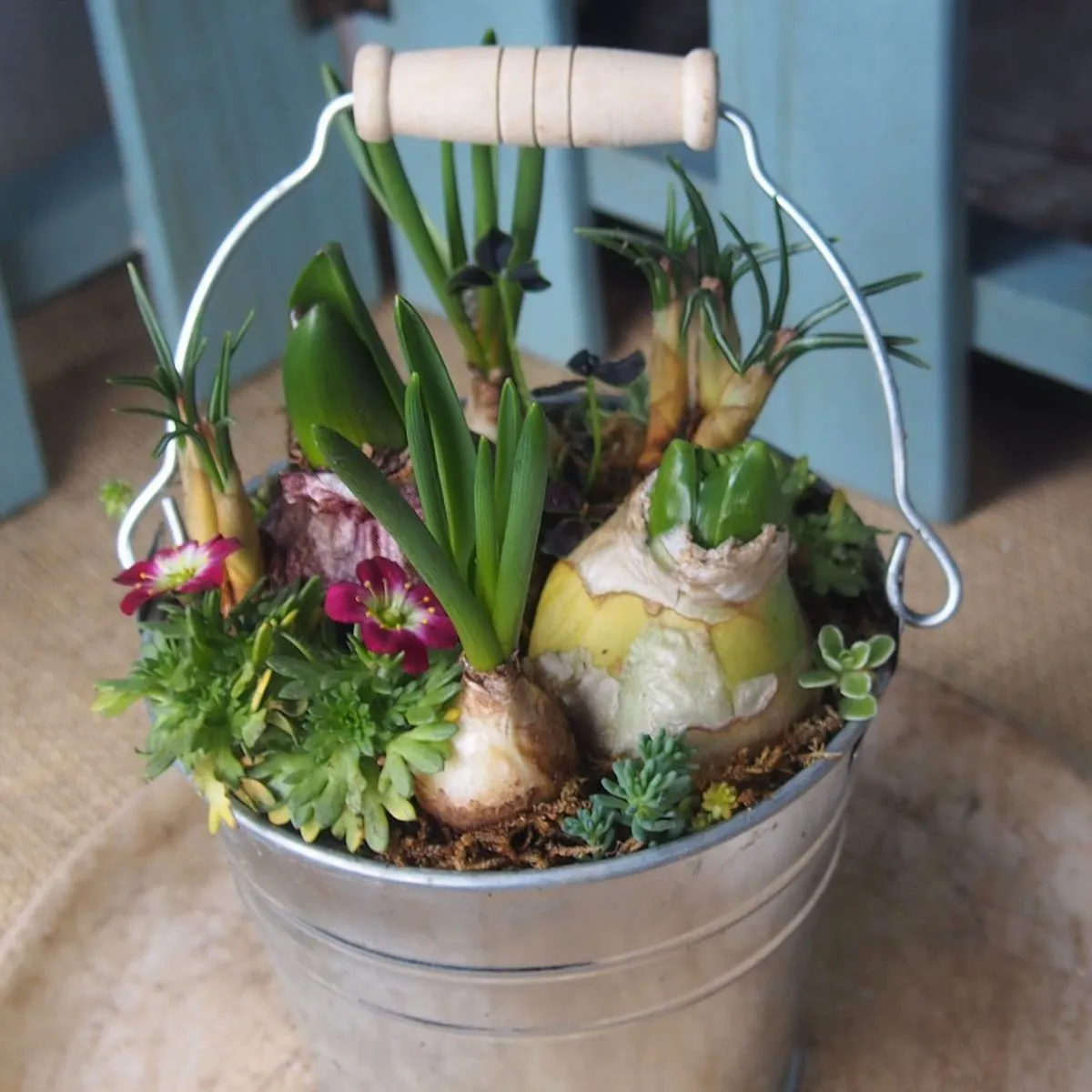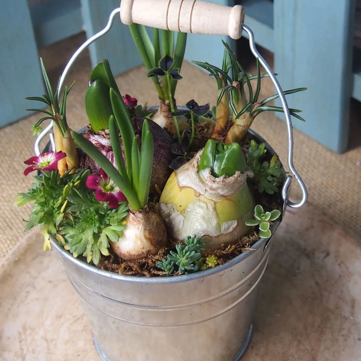 小さなブリキのバケツに