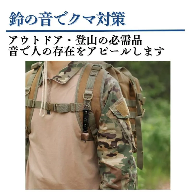 歩くたびに鈴が鳴り、人の存在をアピール。不意の遭遇回避に役立ちます。