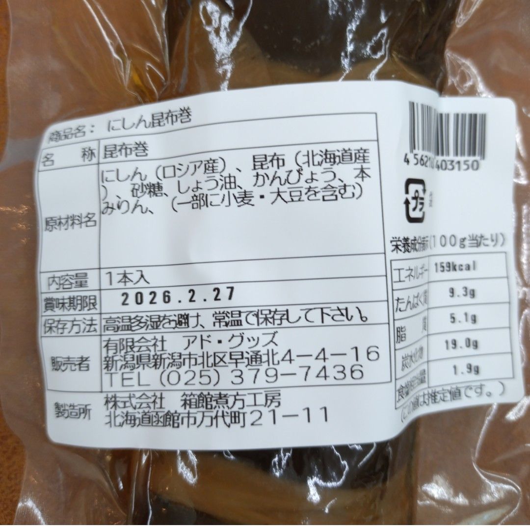 北海道産の良質の昆布を使用し、ロシア産のにしんと共に巨大な高温の蒸気釜で一時間半じっくり炊き上げ旨味を閉じ込めました(*ˊᵕˋ*)