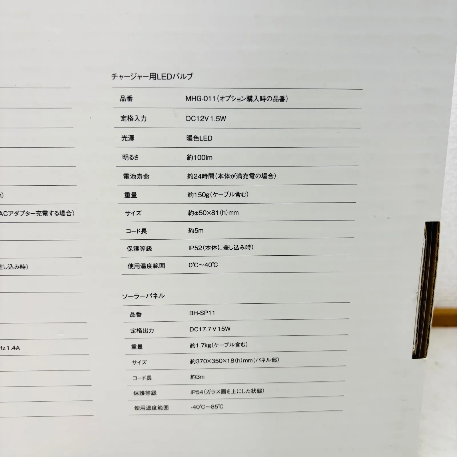 チャージャー用LEDバルブ/約150g(ケーブル含む)、ソーラーパネル/コード長:約1.7kg(ケーブル含む)