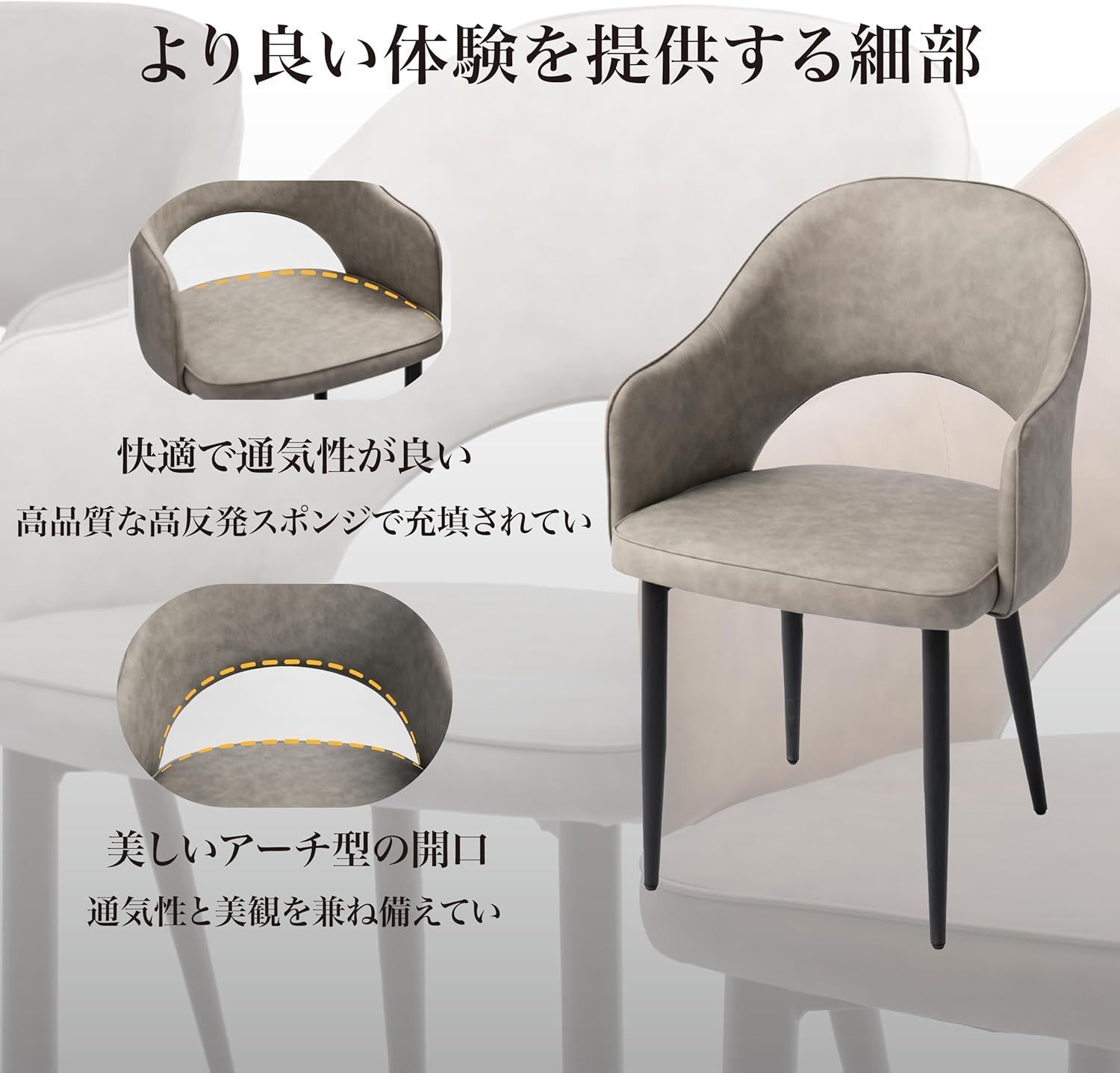 ●快適な座り心地:人間工学に基づいた肘付きデザインで、長時間座っても疲れにくい。クッション性に優れた座面で、座るたびに快適さを実感できます。