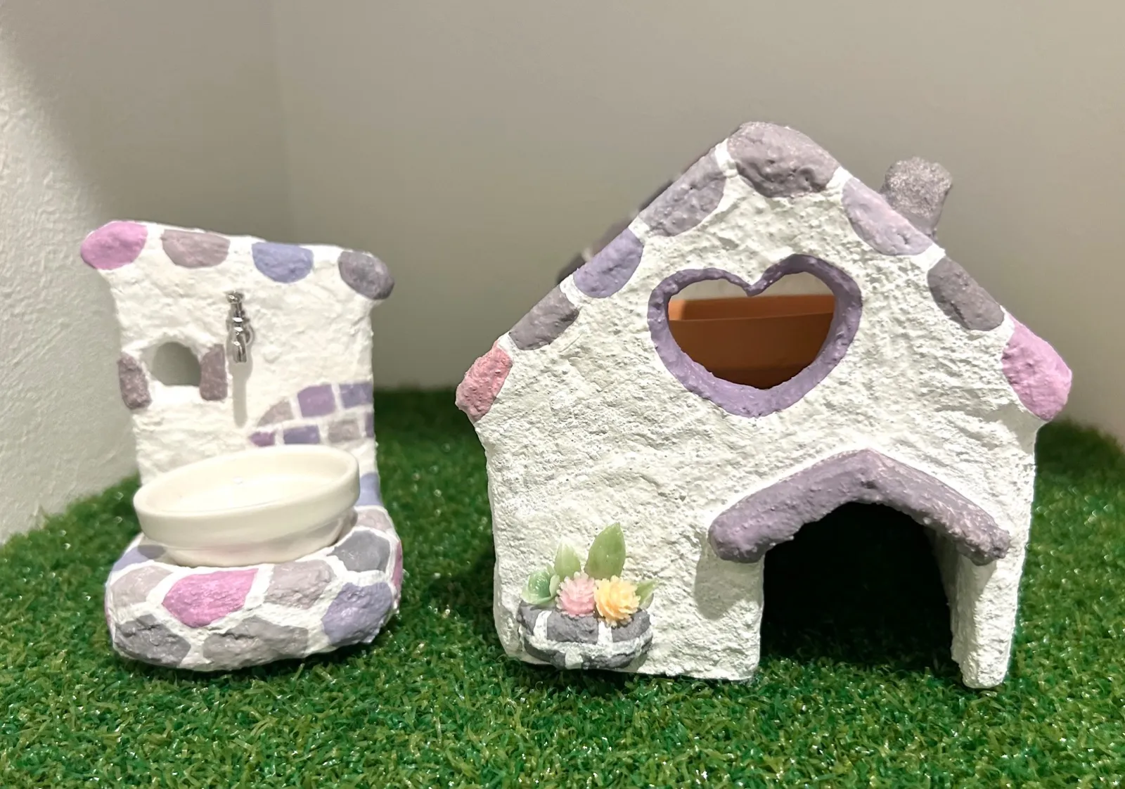 小型爬虫類用のウェットシェルターとお水入れのセットです。