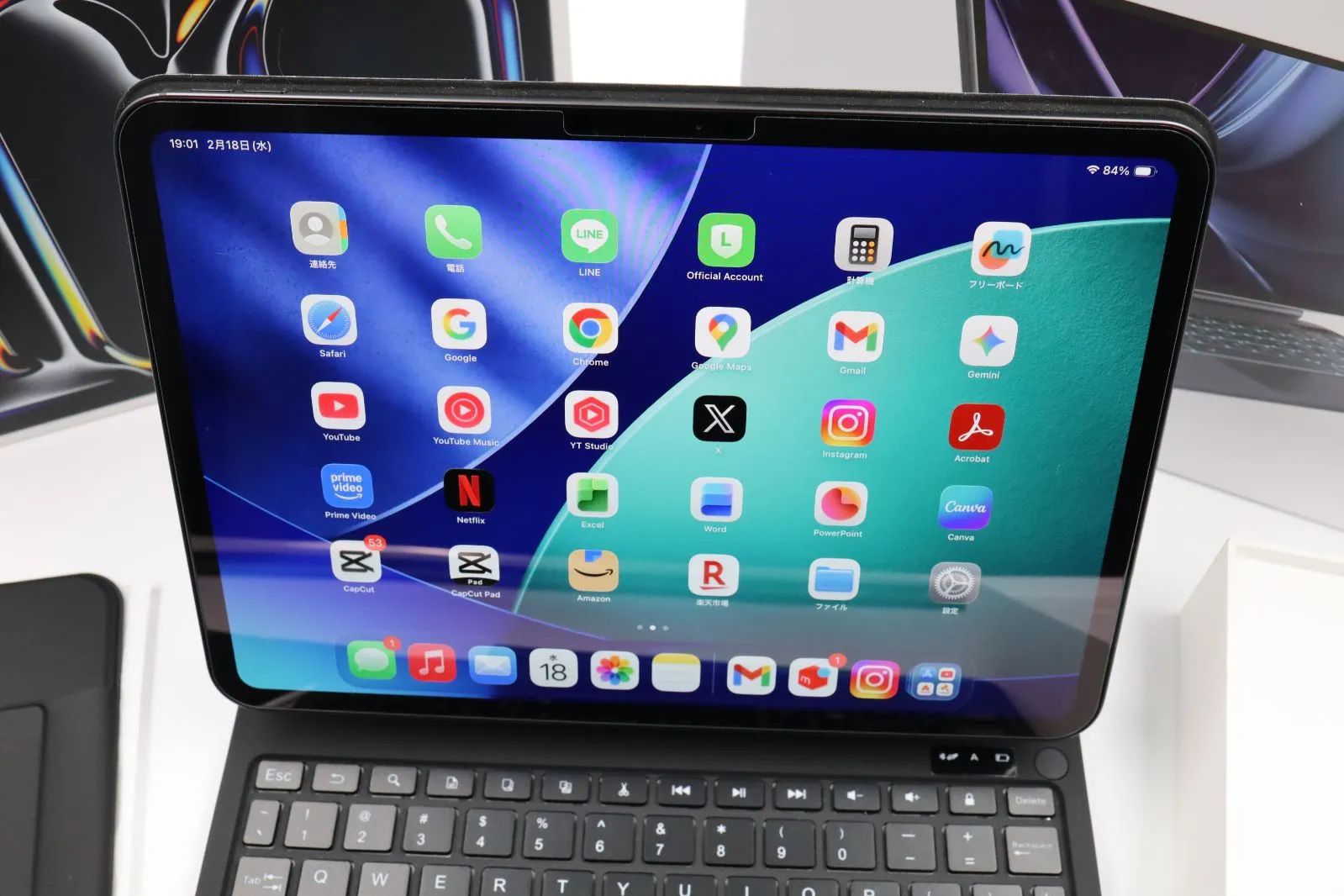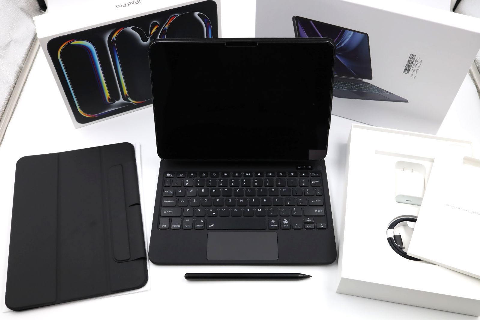 社外キーボード(定価1万円)、社外タッチペン(定価3千円)、社外タブレットカバー(定価:3千円)、ガラスフィルム(施工済み)をお付けさせて頂きます。