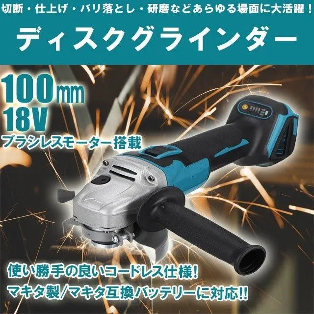 マキタ(makita)製のバッテリーが使用可能なディスクグラインダーです。