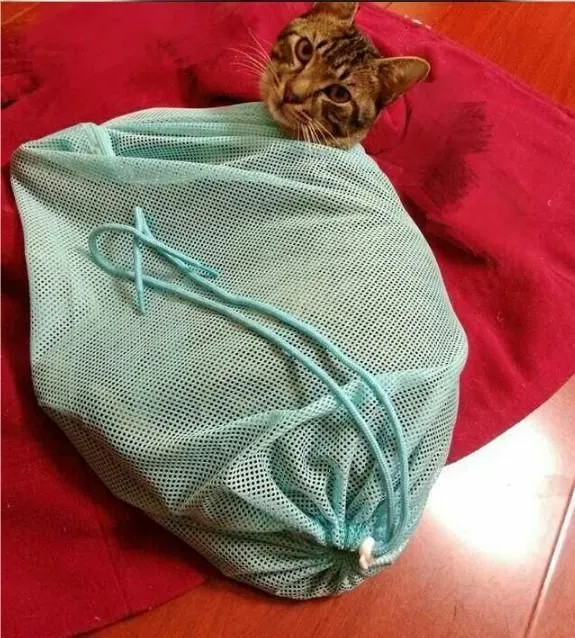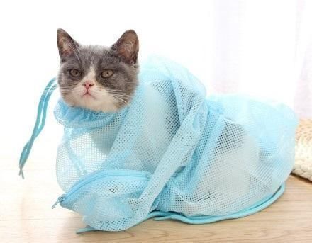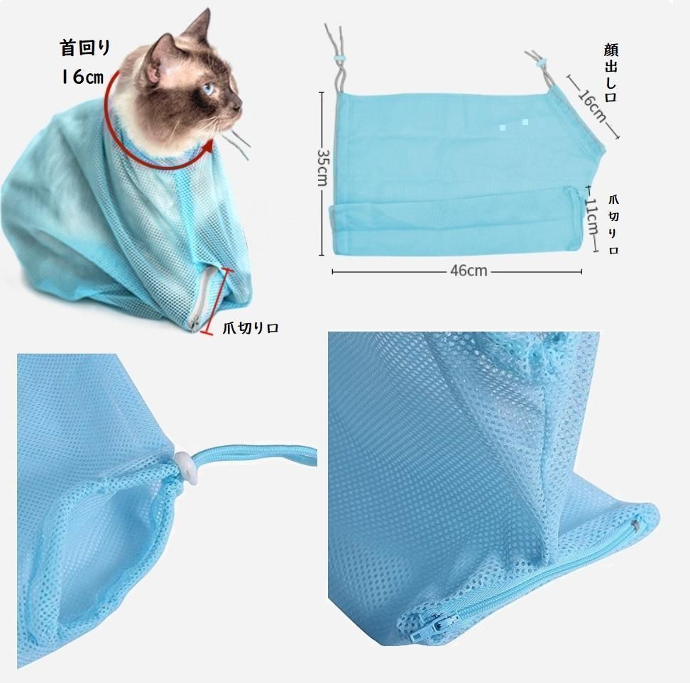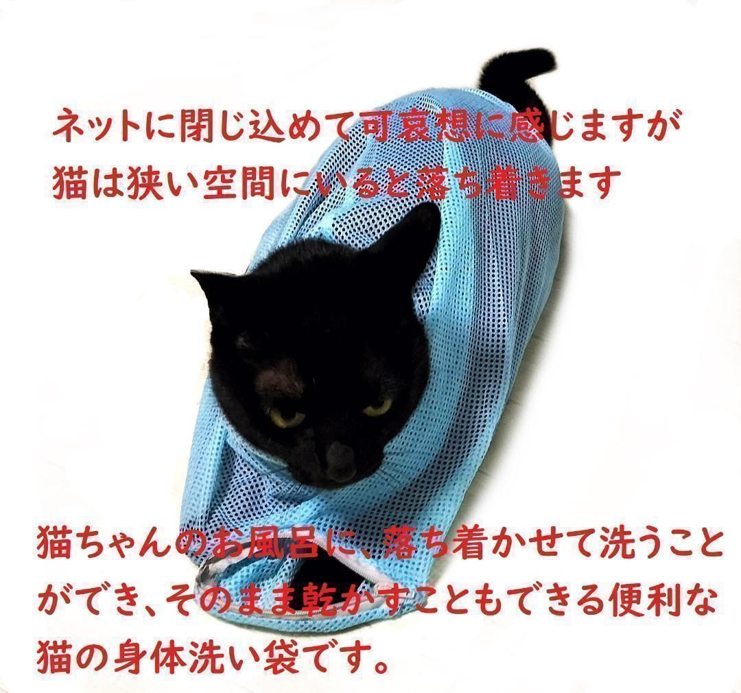猫ちゃんのお風呂に、落ち着かせて洗うことができ、そのまま乾かすこともできる便利な猫の身体洗い袋です。薬投与・歯磨き・点眼・病院での診察や注射等に、キャリーに入れてお出かけにもお使い頂けます。