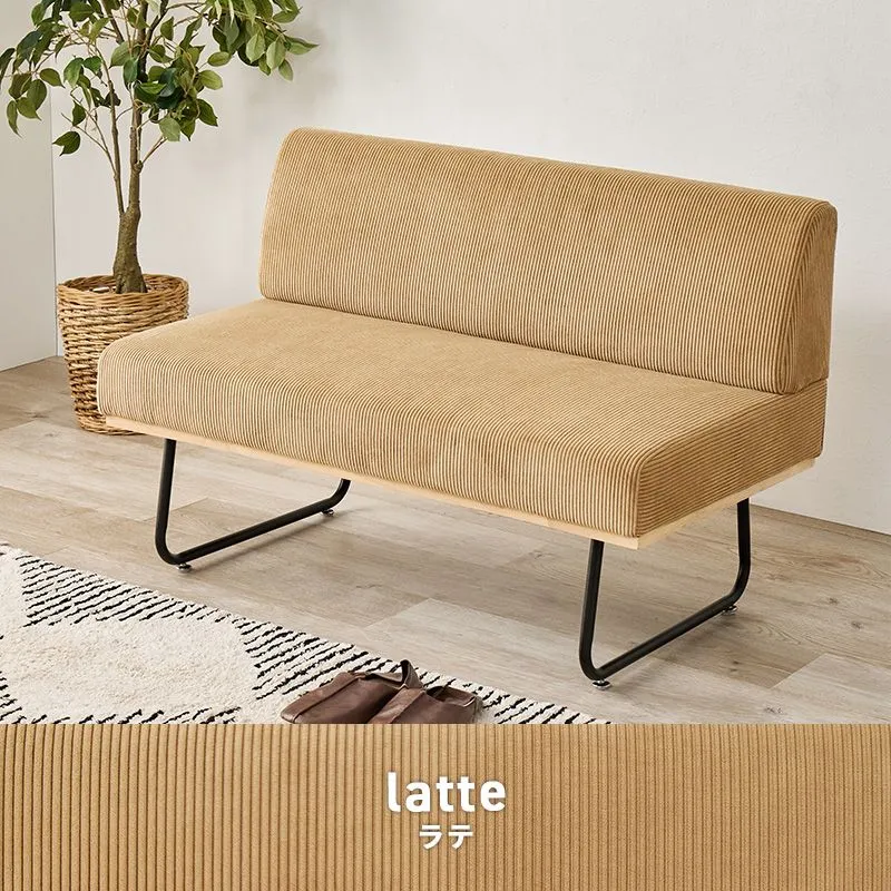 【商品説明】 お部屋のアクセントになるコーデュロイ生地を使用。肘が無いのでコンパクトタイプだけど座面は広々。ダイニングソファやワンルームのソファとしてもおすすめ