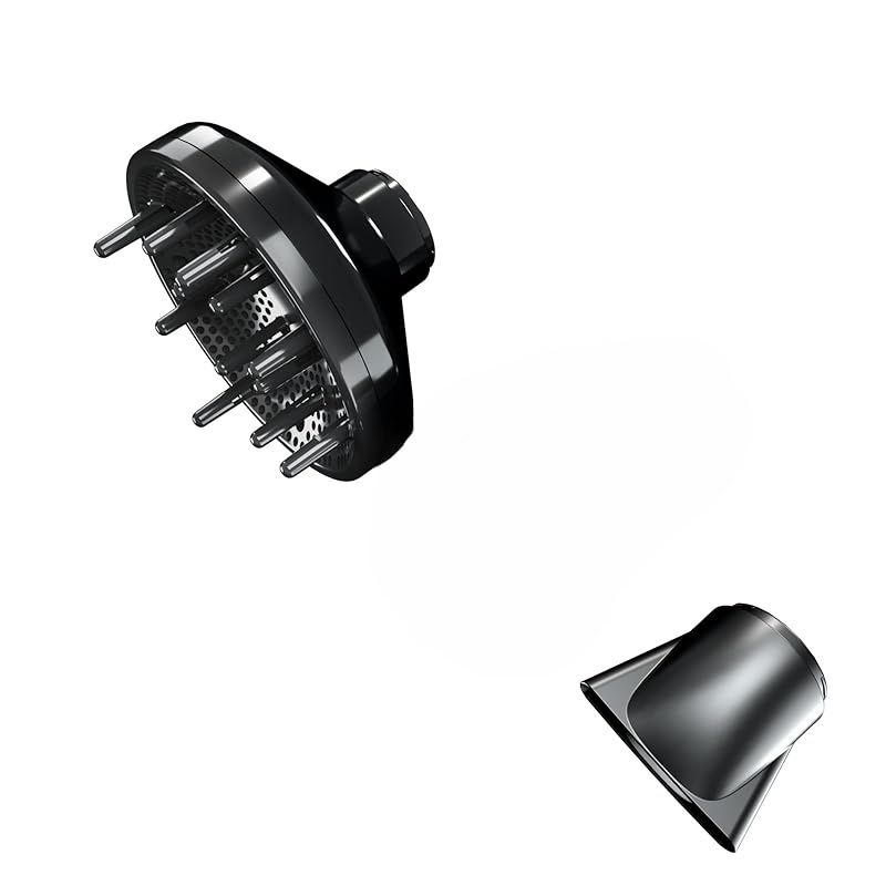 2種類のノズル付き:本ドライヤーには、集中風量でスタイリングをサポートする「集中ノズル」と、ボリュームアップに最適な「ディフューザー」の2種類のノズルが付属。