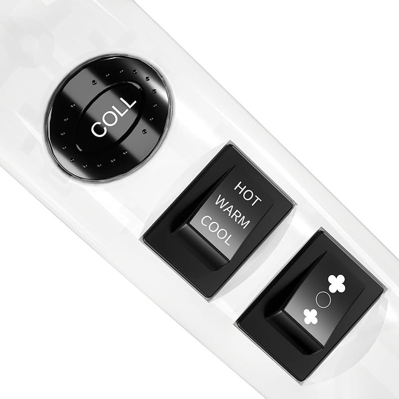 3段階温度×2段階風量調節:最適な風温を3段階から選択可能。「HIGH(高温)」で素早く髪を乾かしたり、「WARM(中温)」でダメージを軽減しながらセットしたり、「COOL(冷風)」でスタイリングの仕上げを固定。さらに風量も「強風」と「弱風」の2段階切替えに対応。強風で効率的に水分を飛ばし、弱風で局部的なスタイリングを精密に仕上げることができます。
