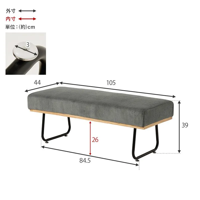 【商品説明】 お部屋のアクセントになるコーデュロイ生地を使用。広々とした座面のベンチは、背もたれが無いのでお部屋に圧迫感を与えずダイニングにも設置できます。
