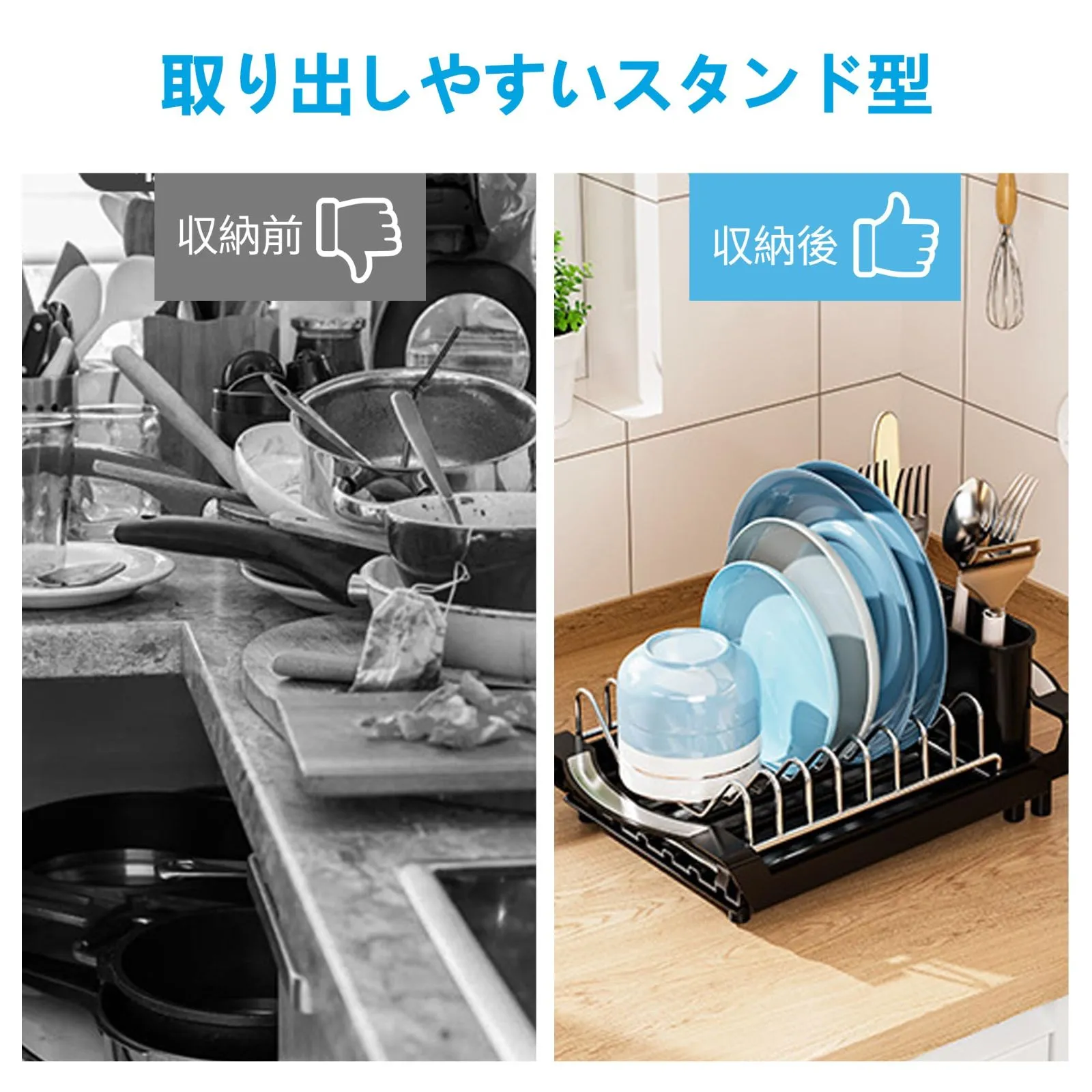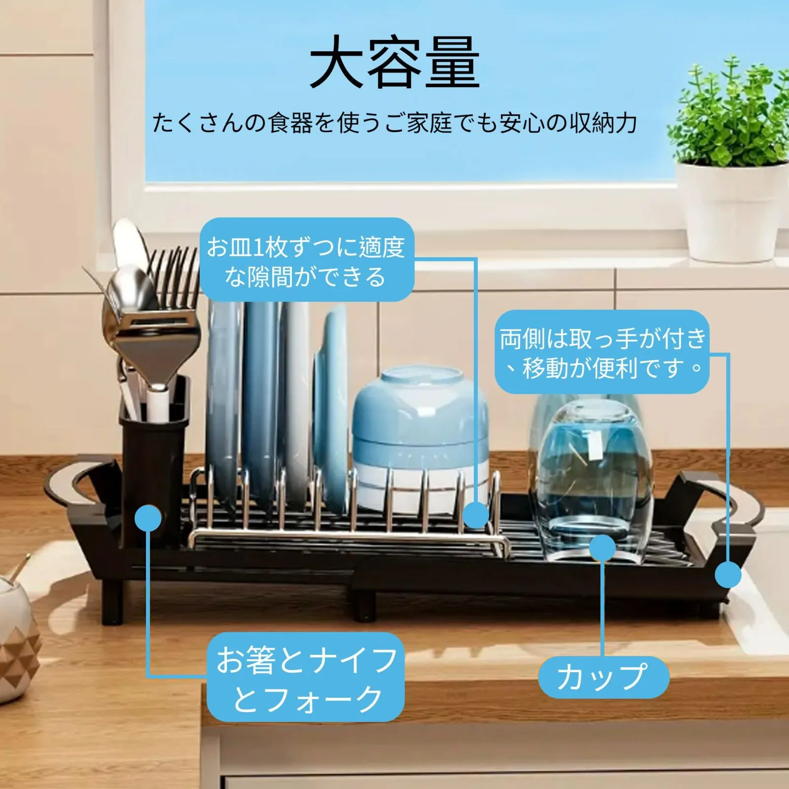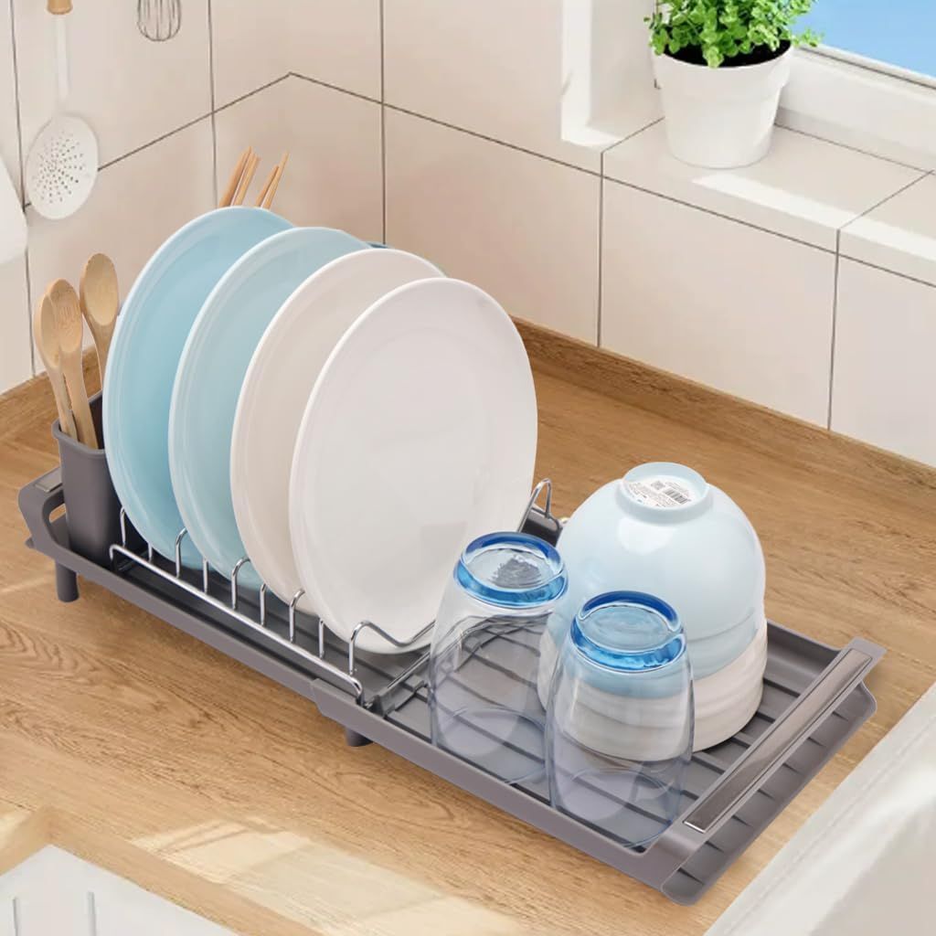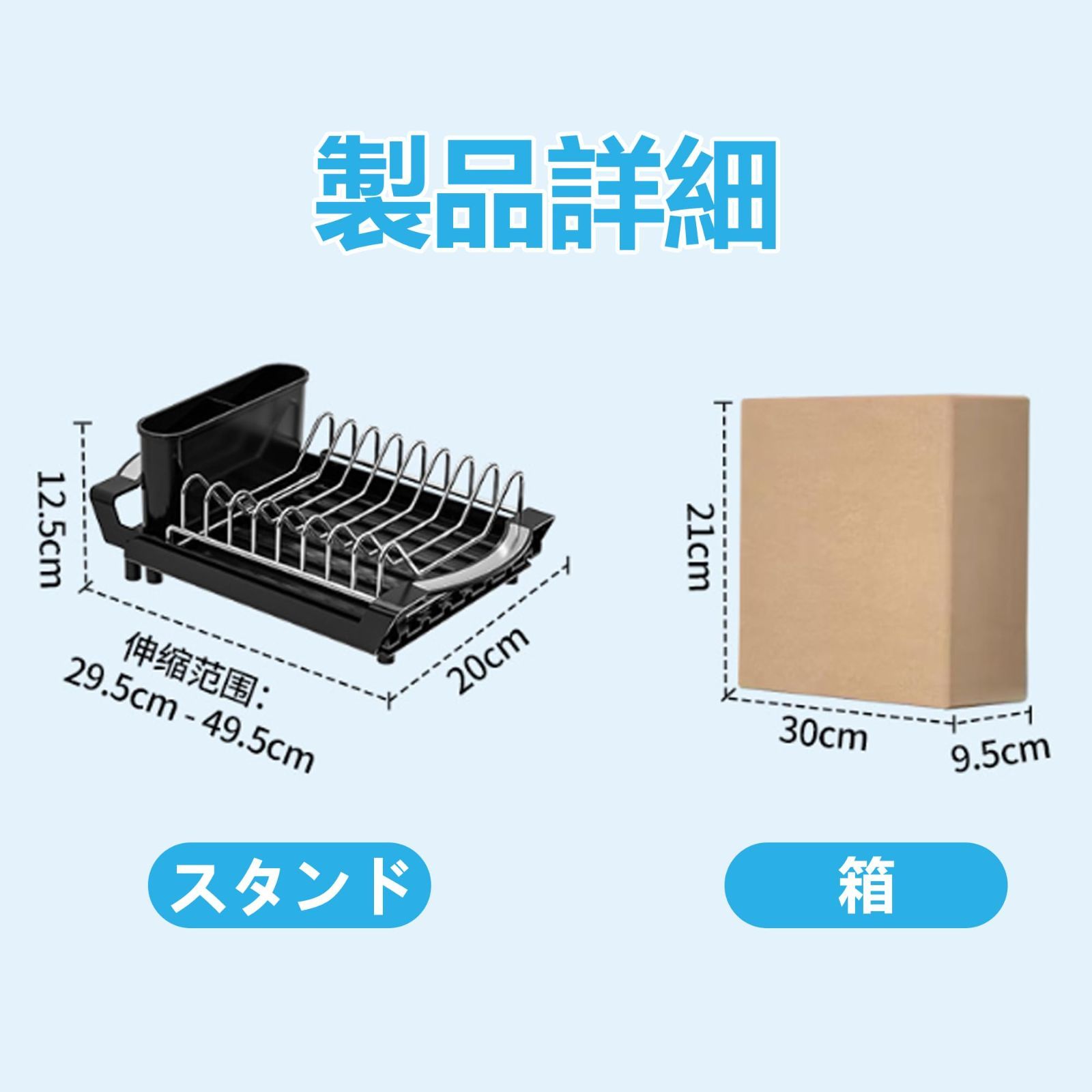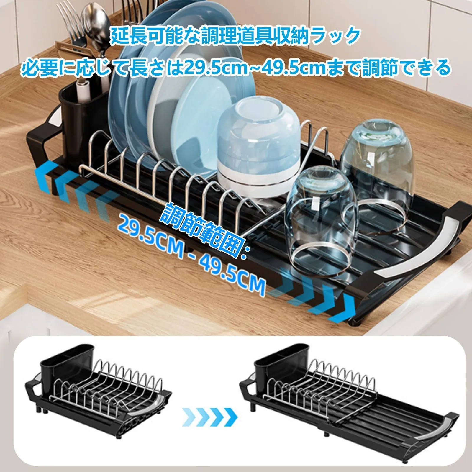 【伸縮式】スライドすることで、簡単にサイズ調整。洗い物の量に合わせて伸縮できて自由に調整可能、限られたスペ-スを有効活用。