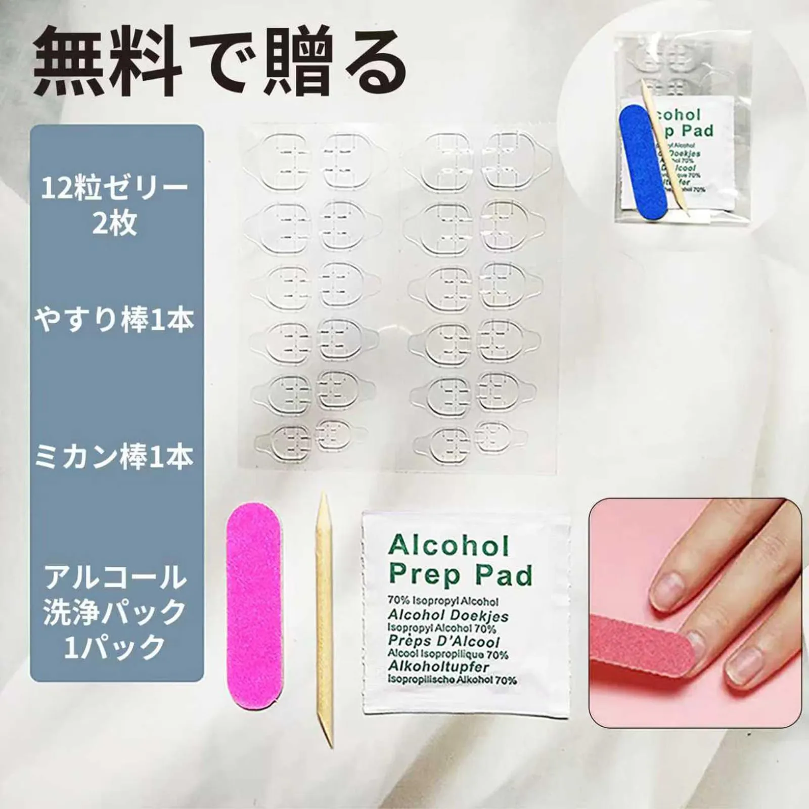 【製品内容】:ネイルアートプレート 10 枚+ジェリー接着剤 24 個+オレンジスティック 1 本+ネイルバッファー 1 個+クリーニングパッド 1 枚