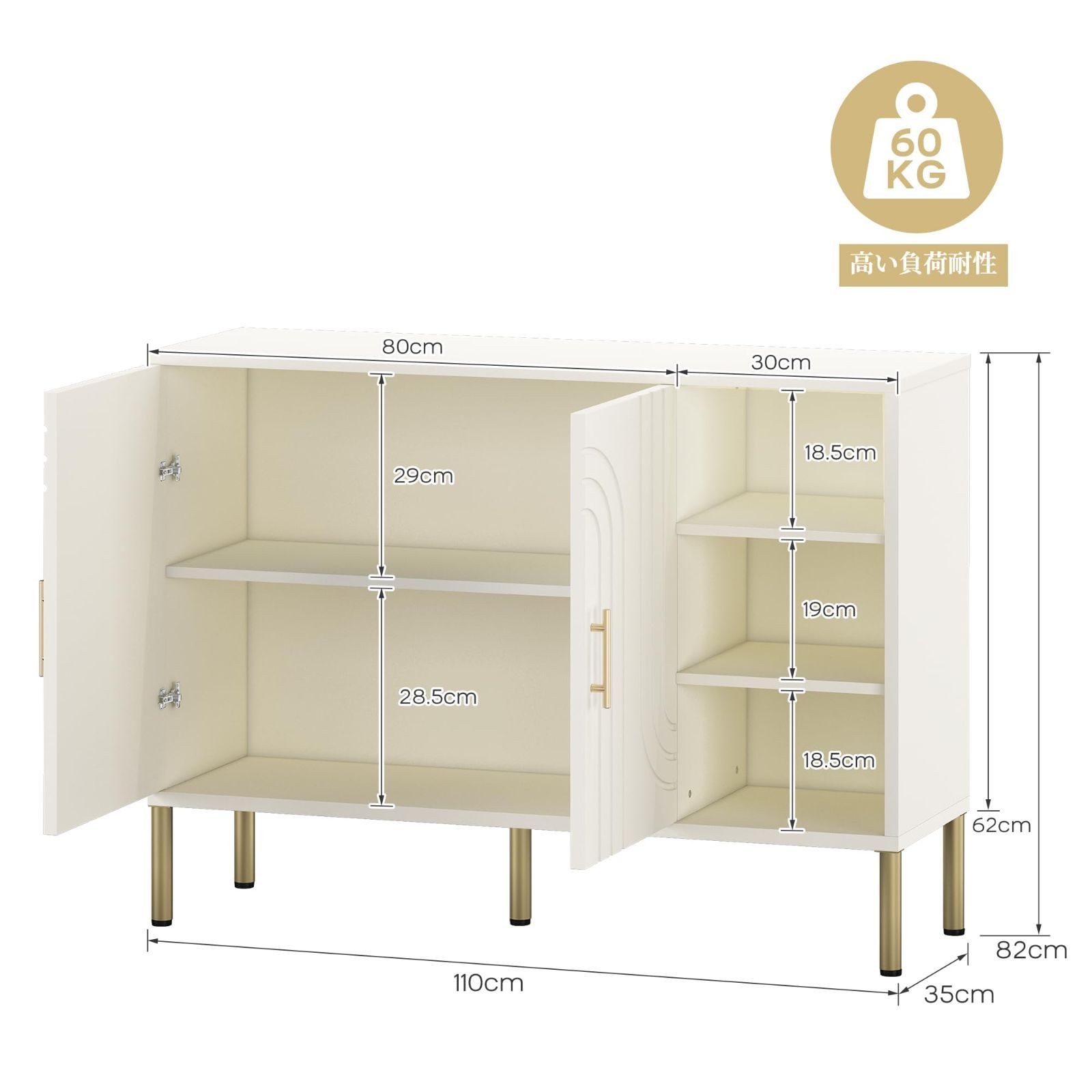 【耐久設計で耐荷重60kg】厚型木製パネルと頑丈な金属脚で高い信頼性 本体には強度のある厚型木製パネルを採用。さらに太く安定した金属脚でしっかりと支え、最大60kgの耐荷重を実現しました。重い物を収納してもぐらつかず、長く安心してお使いいただけます。