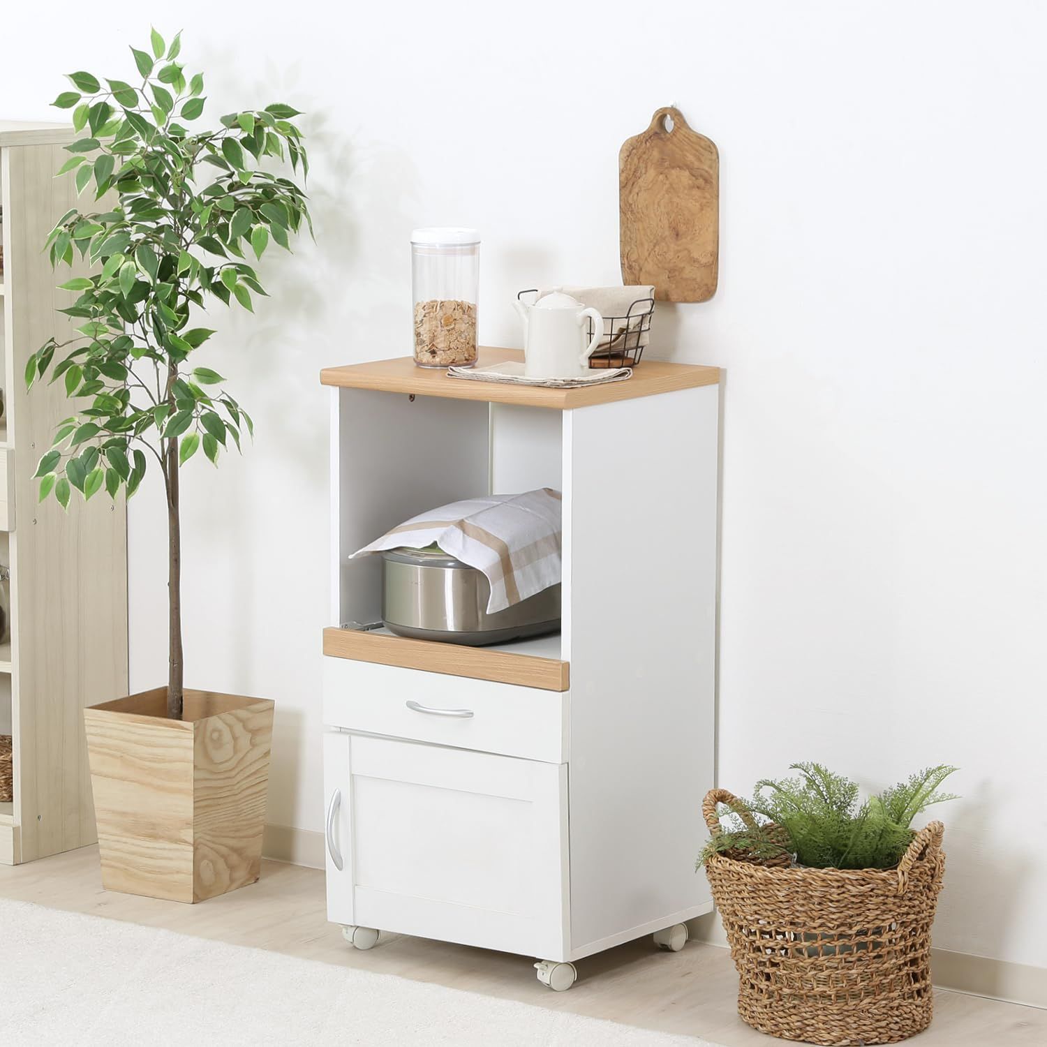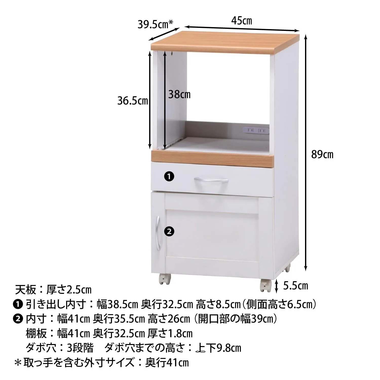 不二貿易 キッチン収納 キッチンカウンター 幅45×奥行39.5×高さ89cm ホワイト スライド棚 コンセント付き コンパクト サージュ 99520