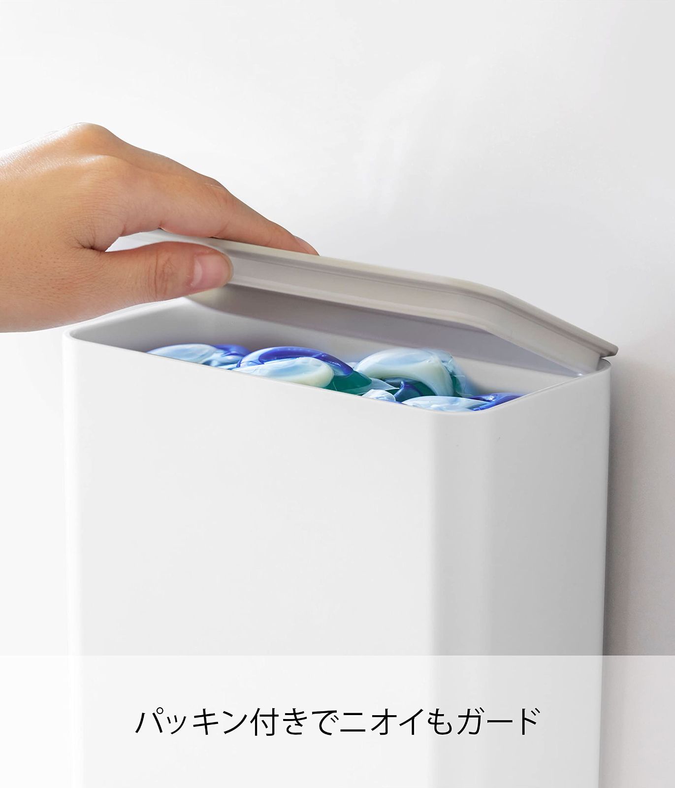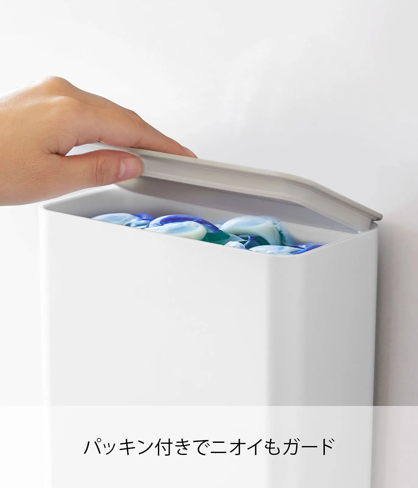 洗濯洗剤ボールをスッキリ収納。片手でサッと開けられます。パッキン付きでニオイもガード。