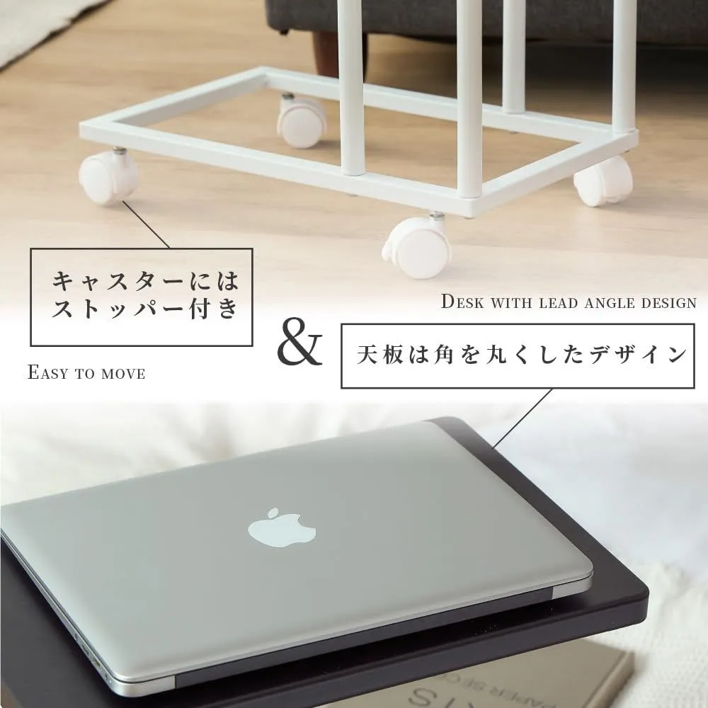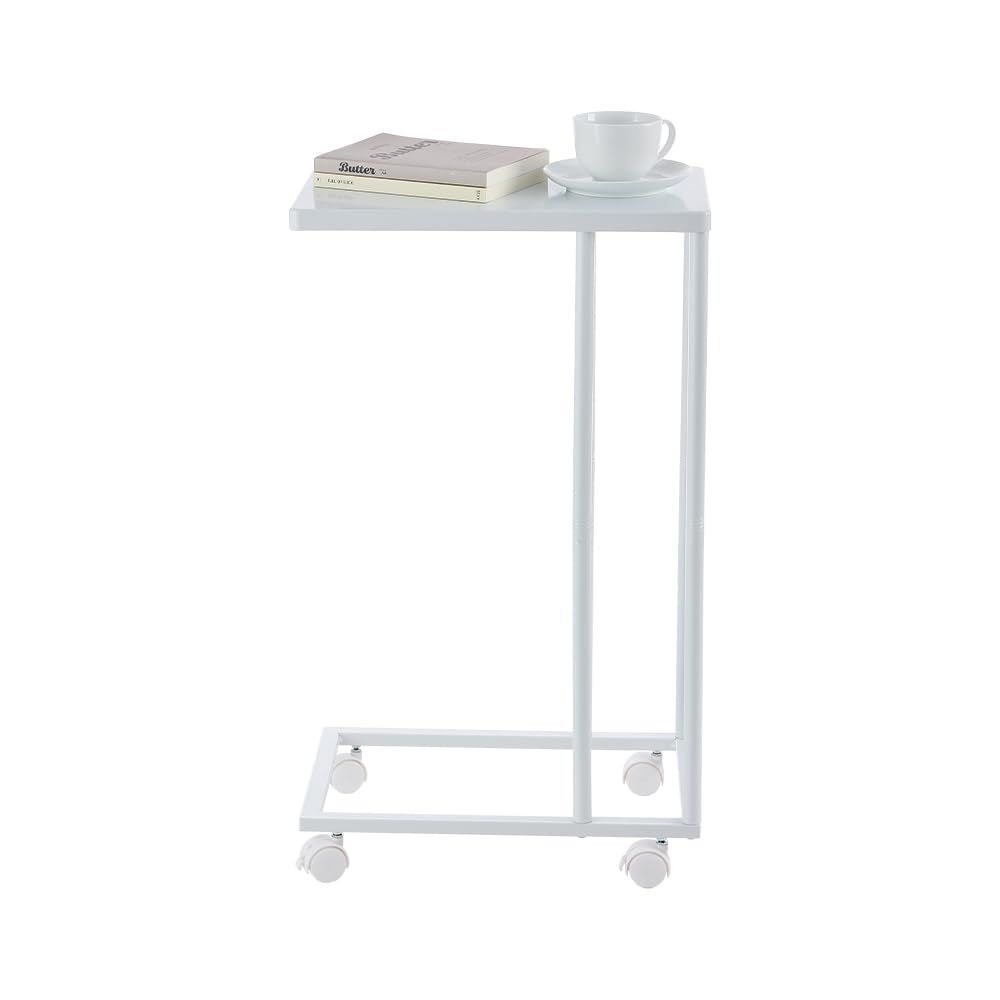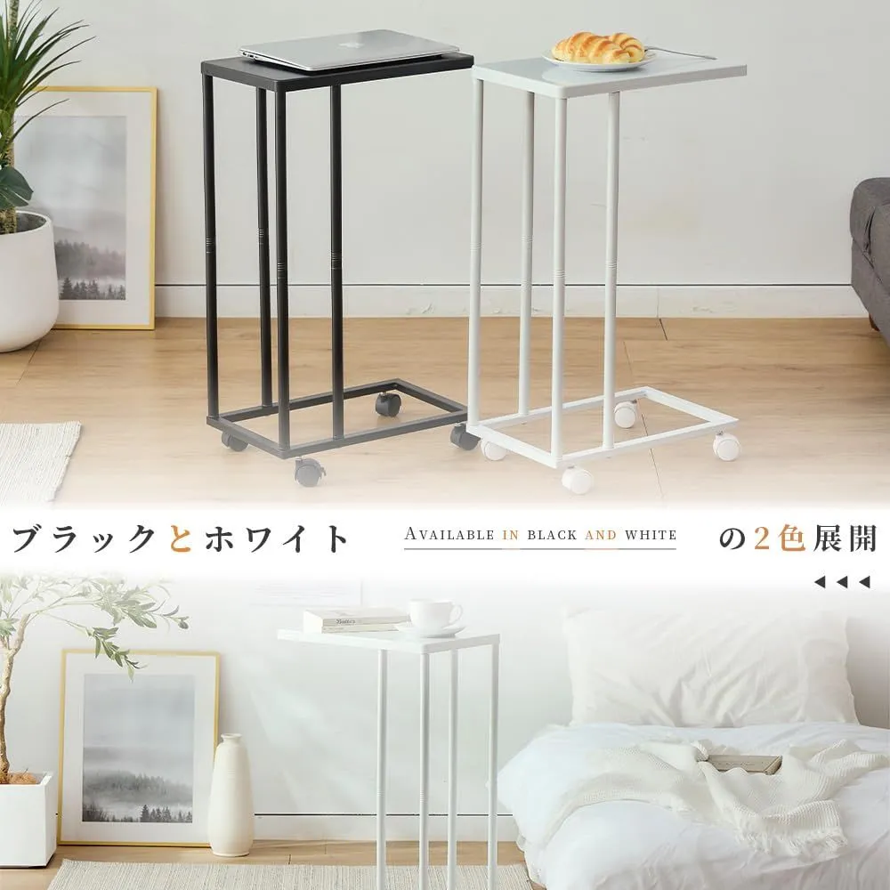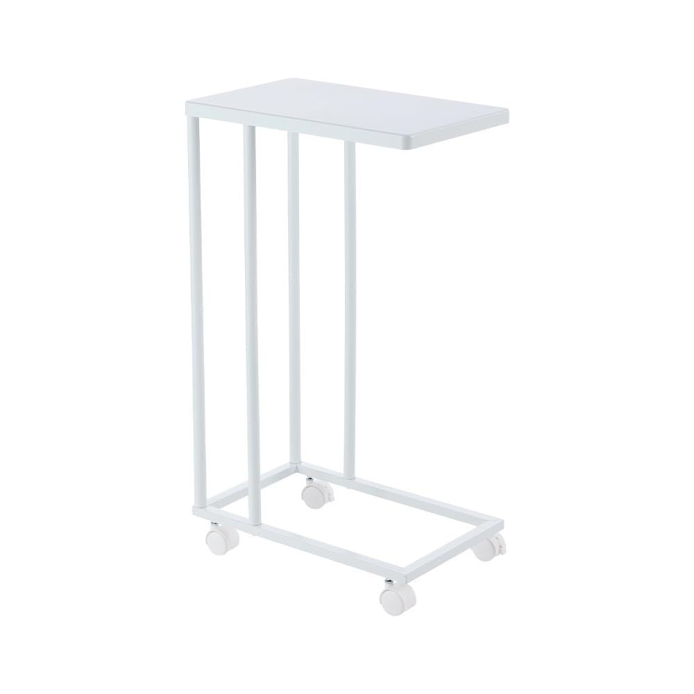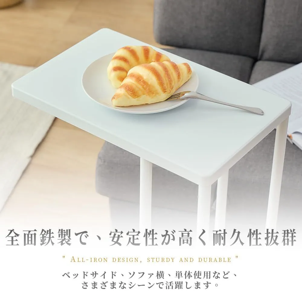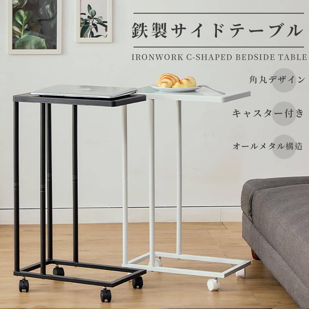 鉄製サイドテーブル キャスター付き 角丸天板 オールメタル構造 ベッドサイド・ソファ横に最適 コンパクト設計-ホワイト