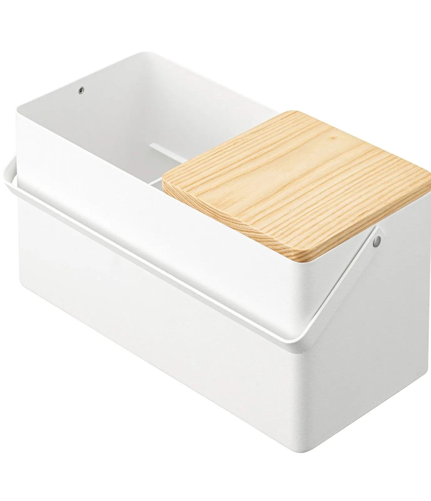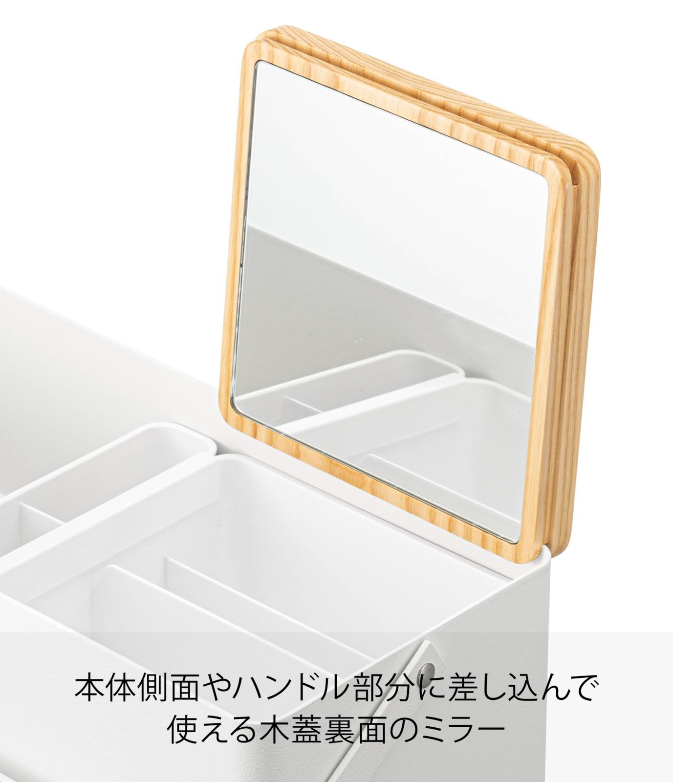品質表示:容器:スチール(粉体塗装)・蓋:天然木(ラッカー塗装)・ミラー:2mm厚ガラス・トレー(大)(小):ABS樹脂