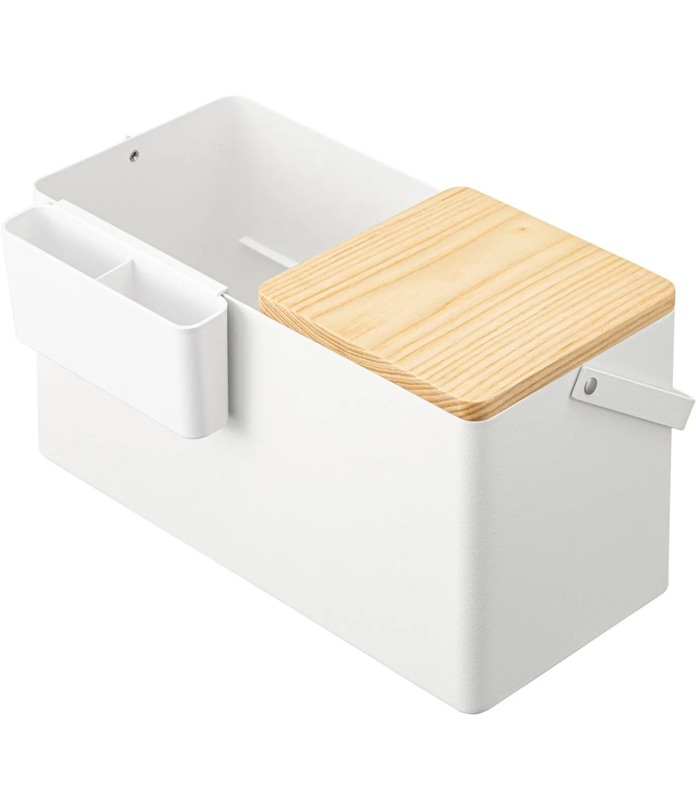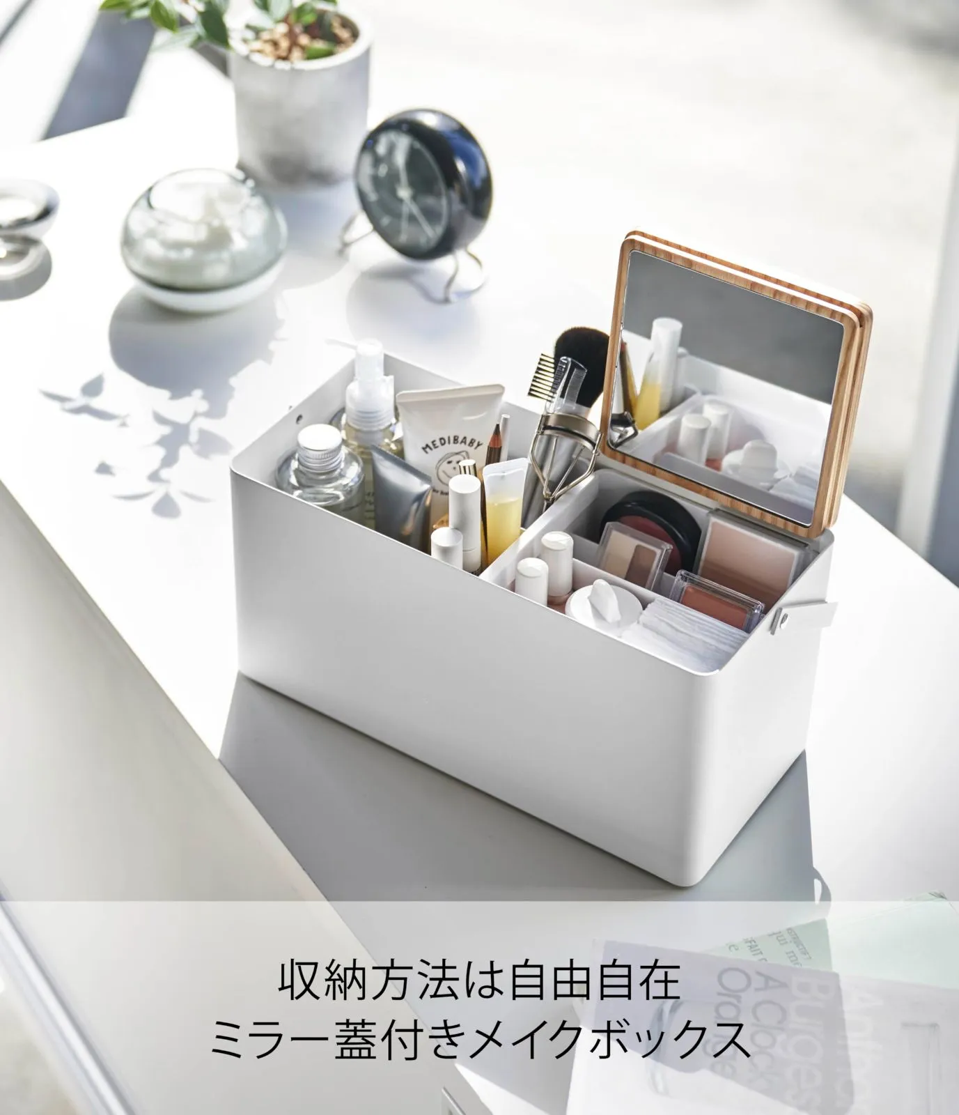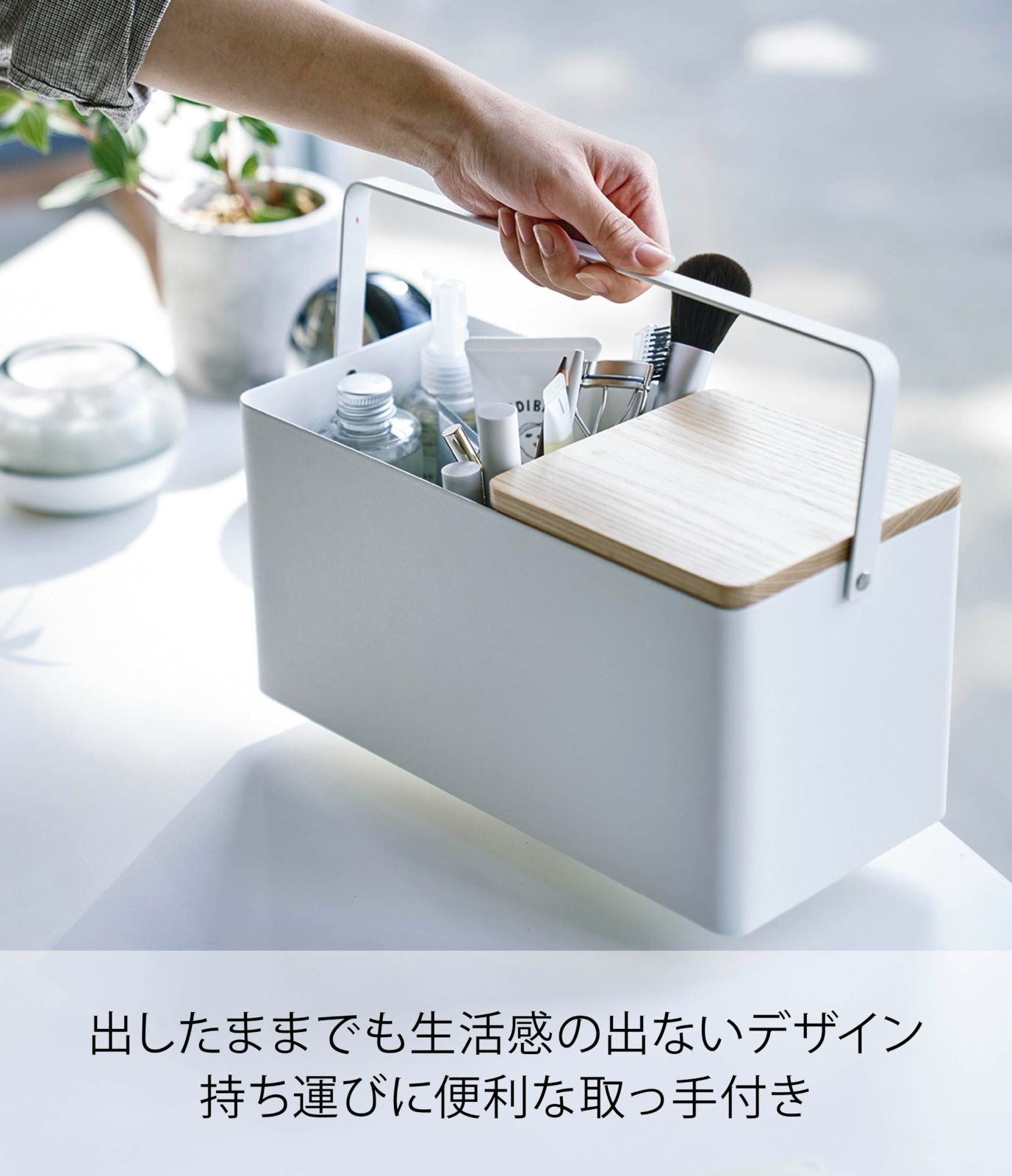 山崎実業(Yamazaki) メイクボックス ホワイト 約W31XD15(取っ手含む)XH15.5cm タワー 持運びできる ハンドル付き 5453
