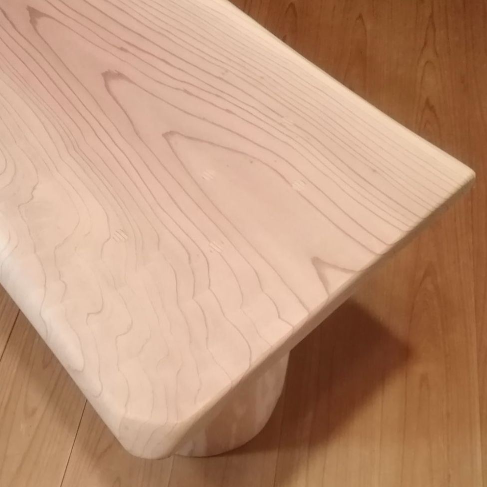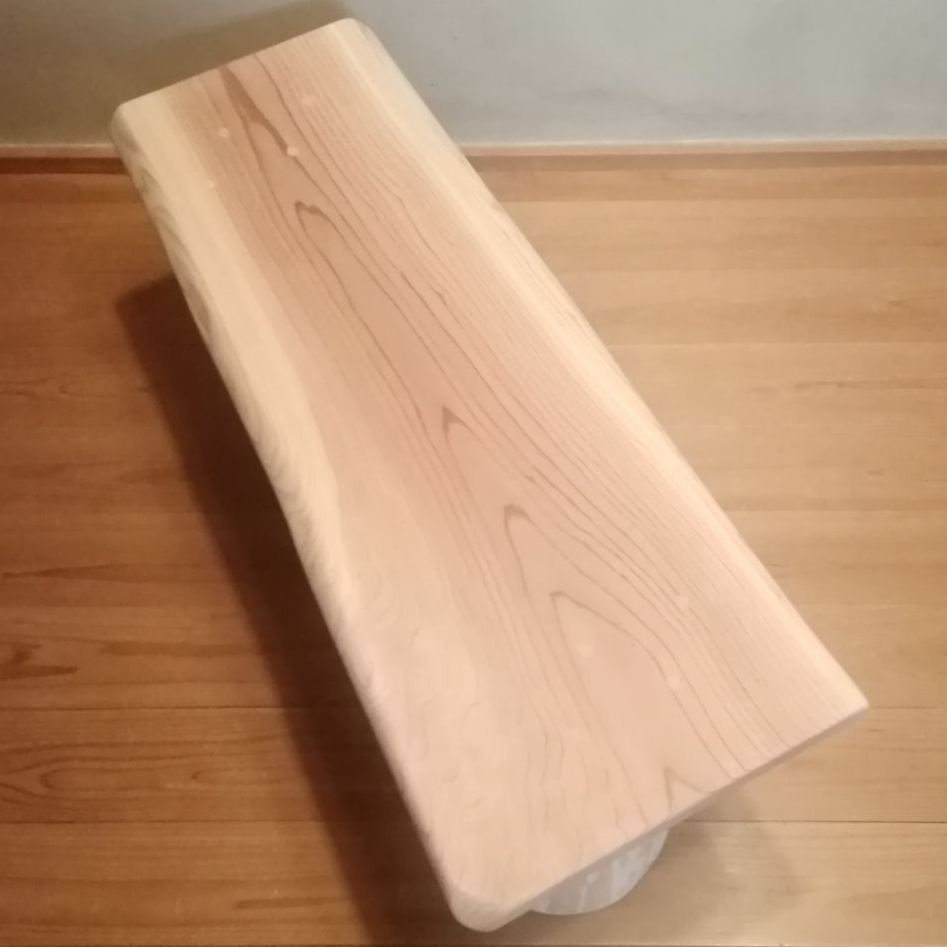 ・天板は丸太の根元部分の張り出している部位をカットした板を使用しました。