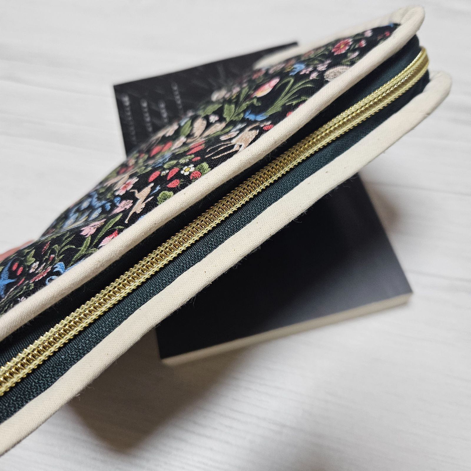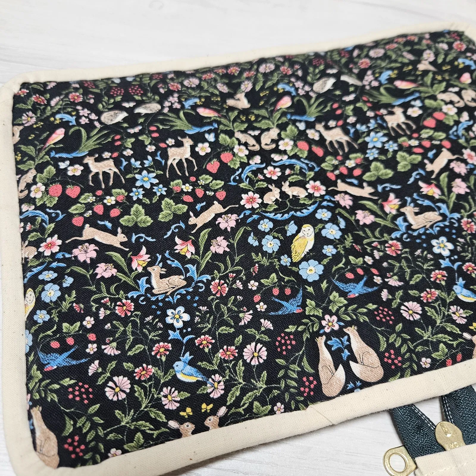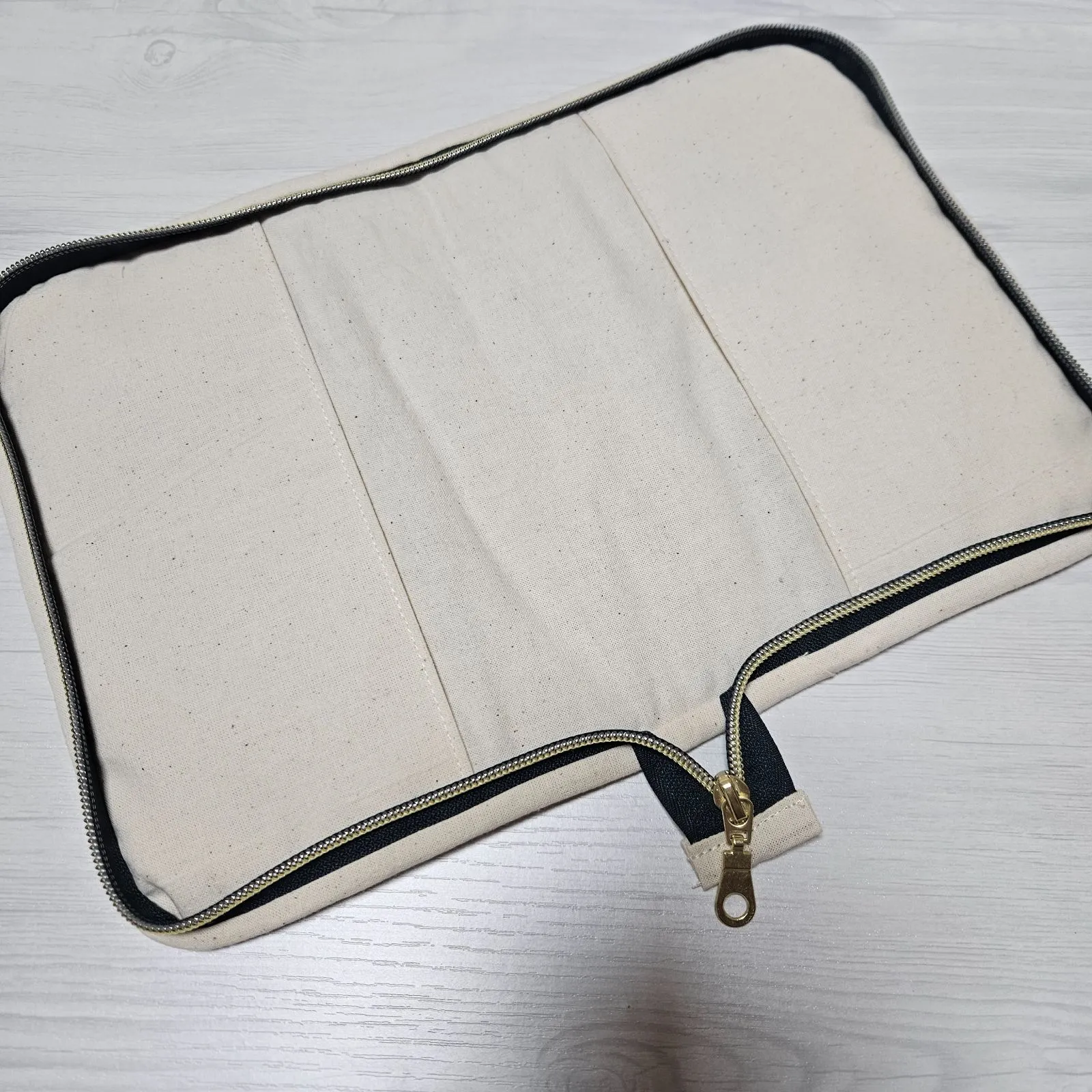 【特徴】 外周ファスナー付きで、カバンに入れた際などにページが傷ついてしまうのを防止できます。 キルト芯をはさんでいるので、程よい厚さふわふわの手触りとなっております。