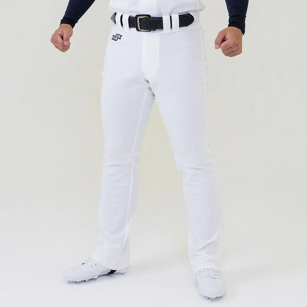 ストレッチ性に優れ、足の上げやすさにこだわった足上げ3Dユニフォームストレートロングパンツ。膝部分に切り返しを施し、野球のプレーに連動した"足の上げやすさ"にこだわった3Dパターン設計です。ストレートロングパンツの裾は、足掛けゴムをホームベース型のステッチで縫製することで、着用中に引っ張られてかかった力を分散することができ、耐久性とフィット感がアップ。腰の弾丸マークは立体感のあるシルバーのシリコンワッペンに仕上げました。