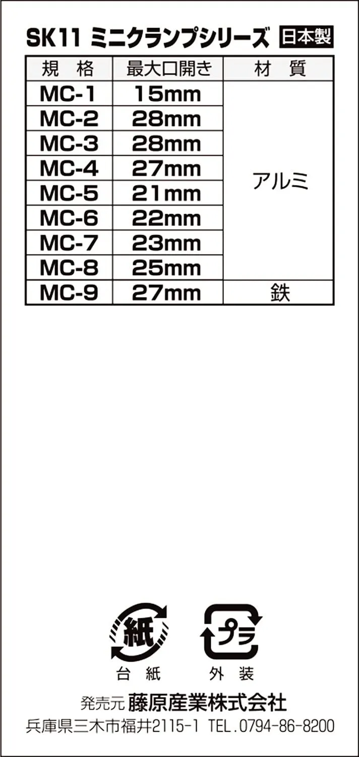 SK11(エスケー11) ミニクランプ アルミ 最大口開き15mm MC-1