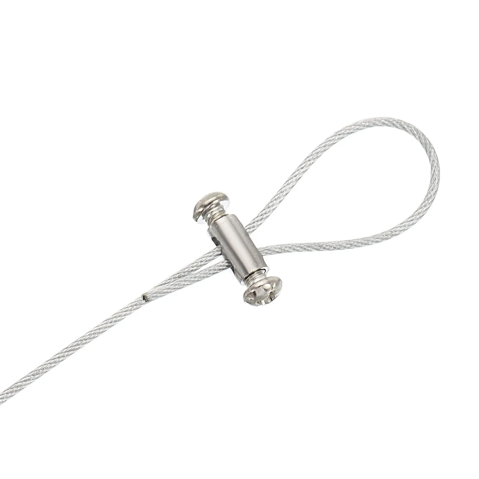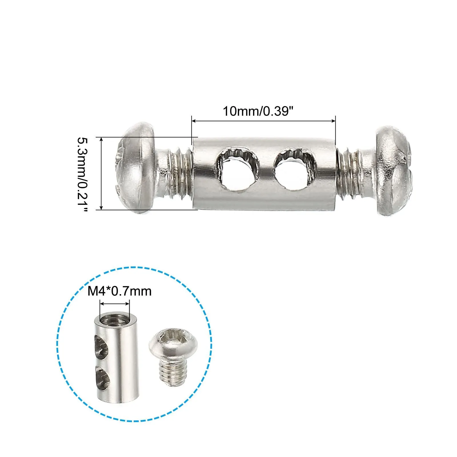 カラー: シルバー; 主な素材: 真鍮;ネジの材質: 炭素鋼; 表面仕上げ: 電気メッキ; 全体サイズ: 5.3 x 10 mm(D*L); 最大ワイヤー穴径: 3 mm;ネジ穴サイズ: M4*0.7 mm; パッキングリスト: 20 x 鋼線ロープ固定クリップ、40 xネジ
