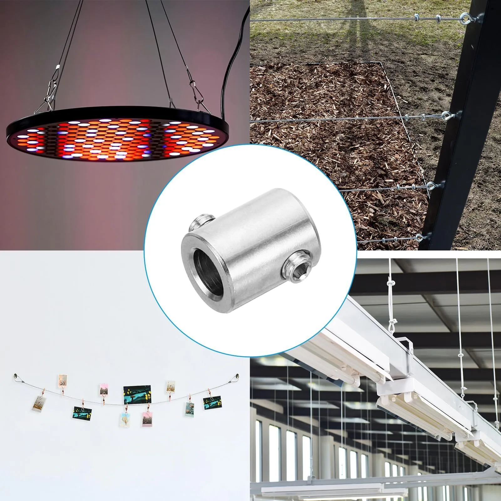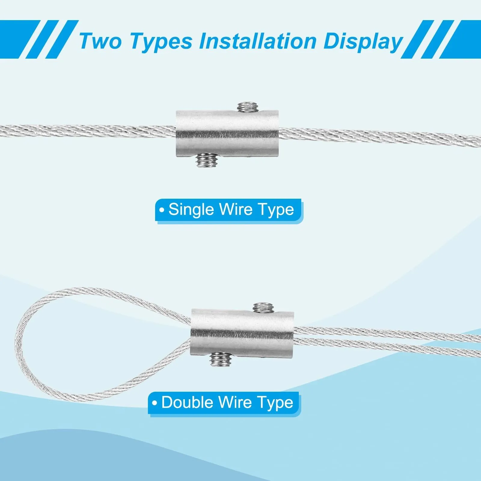 ステンレス鋼ケーブルクランプはワイヤロープ締結用で、工業用途やDIY(水晶ランプ、シャンデリア、シーリング照明、植物育成ライト、テントロープ、日よけ固定、手すりケーブル締結、柵、バナー、写真立て、ハンギングプラント、フィットネス機器固定など)に広く使用可能です。
