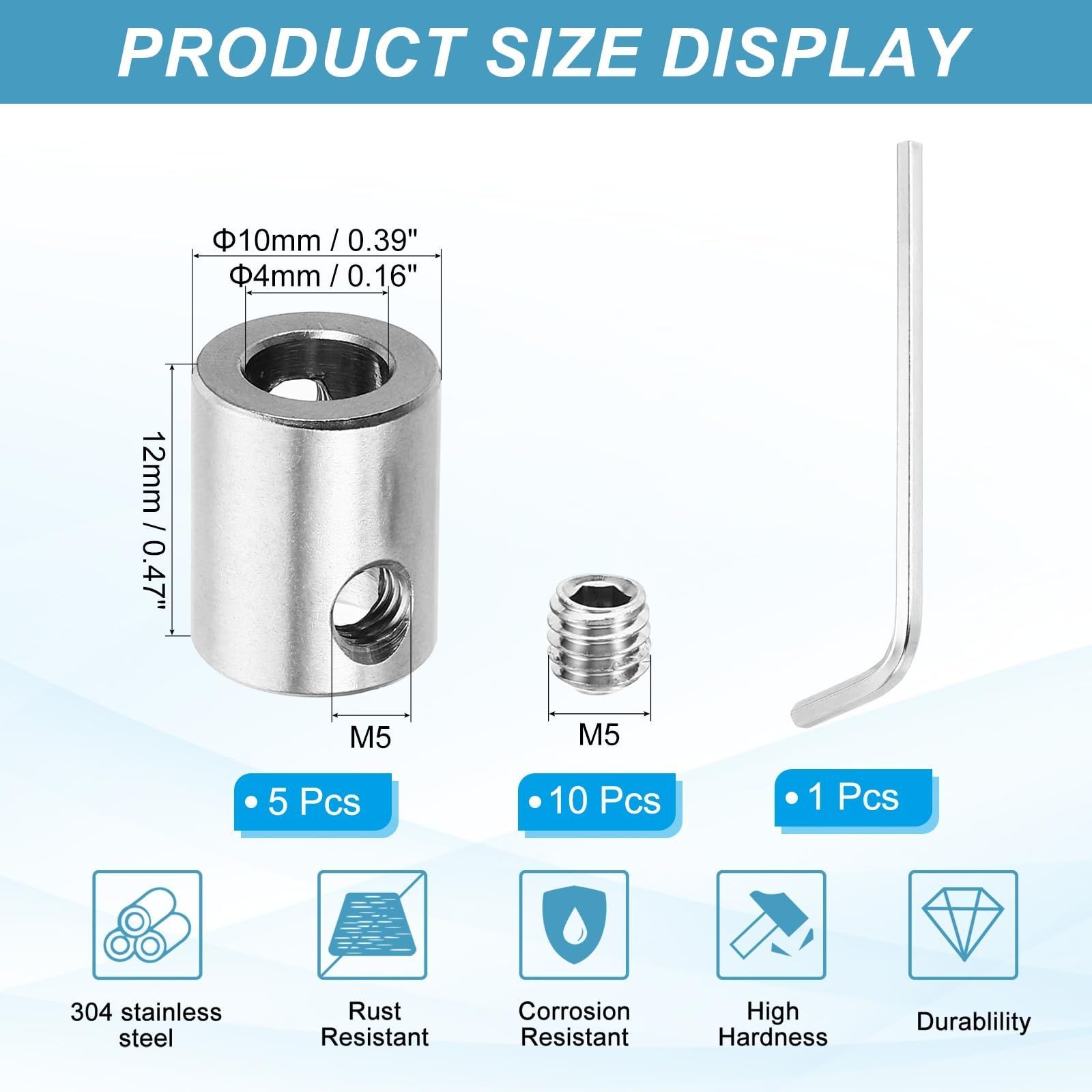 PATIKIL 4mm 穴 ワイヤ ロープ クリップ セット 5個 304 ステンレス 鋼 ダブル 穴 ロック ケーブル クランプ 六角 ネジ スペナー 付属 シルバー