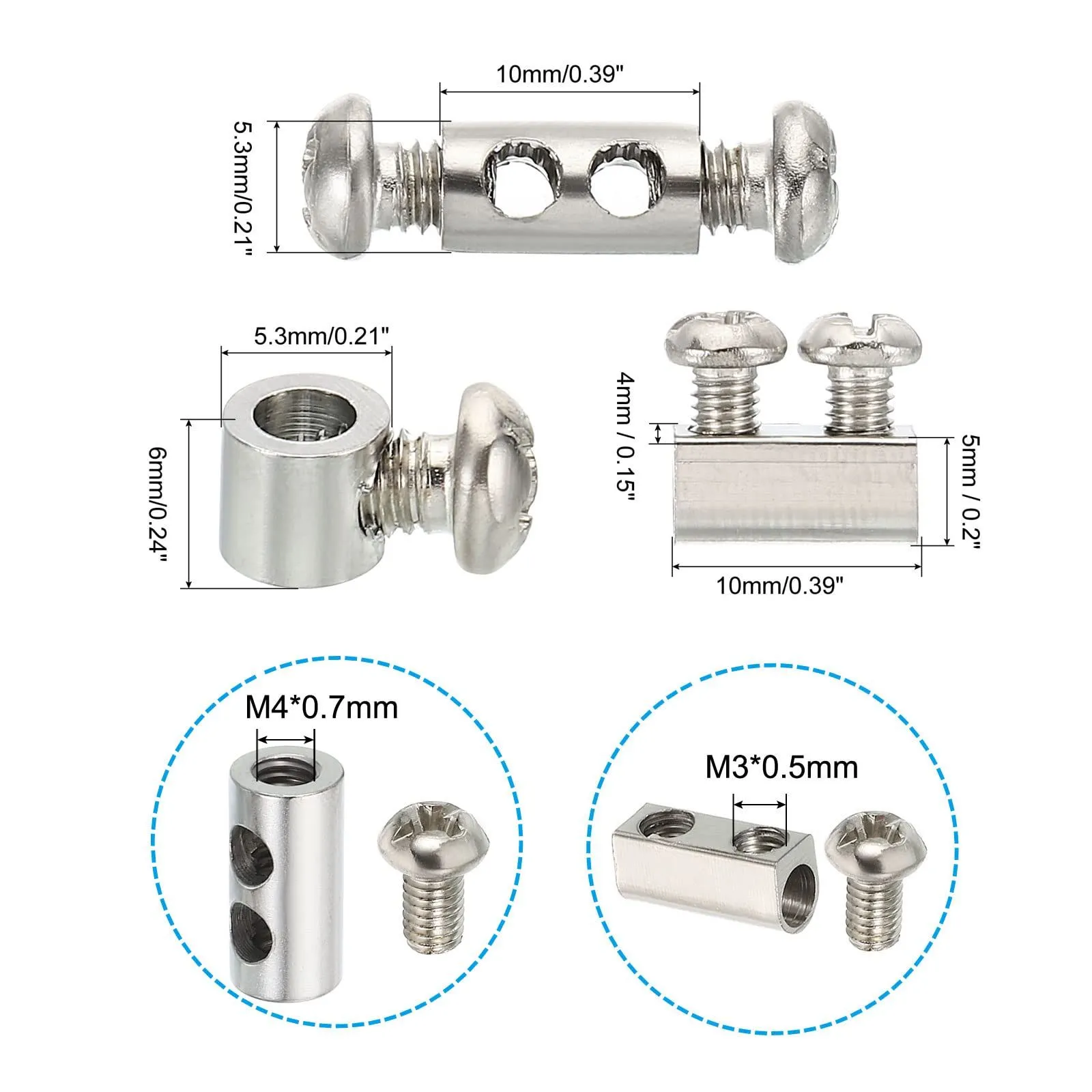 PATIKIL ワイヤーロープクリップ 1セット/18個 スチールケーブルクランプ 3 mm 3.5 mm シングル/ダブルホール ワイヤーロックロープ継手クリップ M3/M4ネジ付き ケーブル用