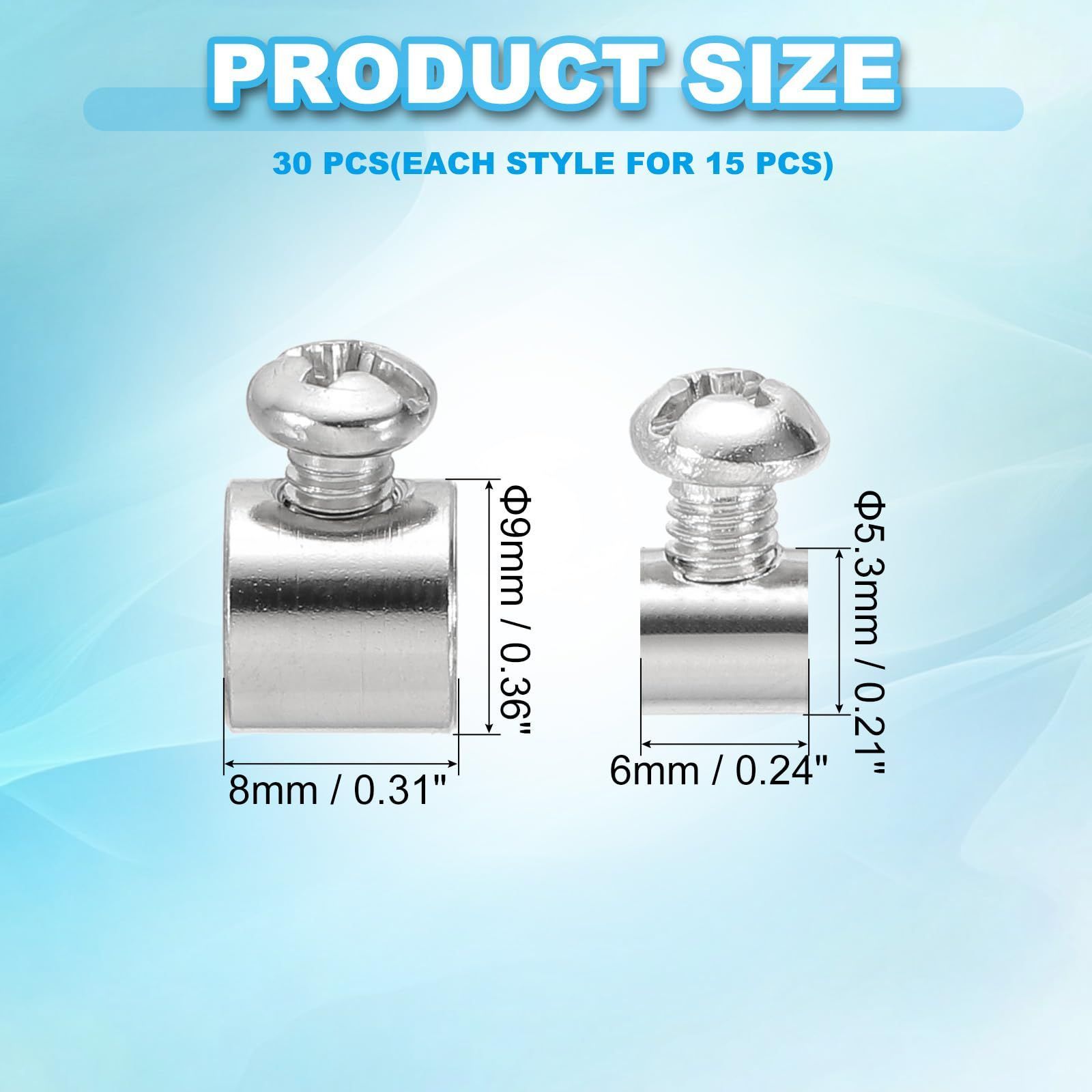仕様:カラー:シルバー;主素材:金属;ネジ素材:炭素鋼;表面仕上げ:電気めっき;全体サイズ:10 x 4 x 5 mm(長さ×幅×高さ);梱包リスト:30 x ワイヤーロープクリップ