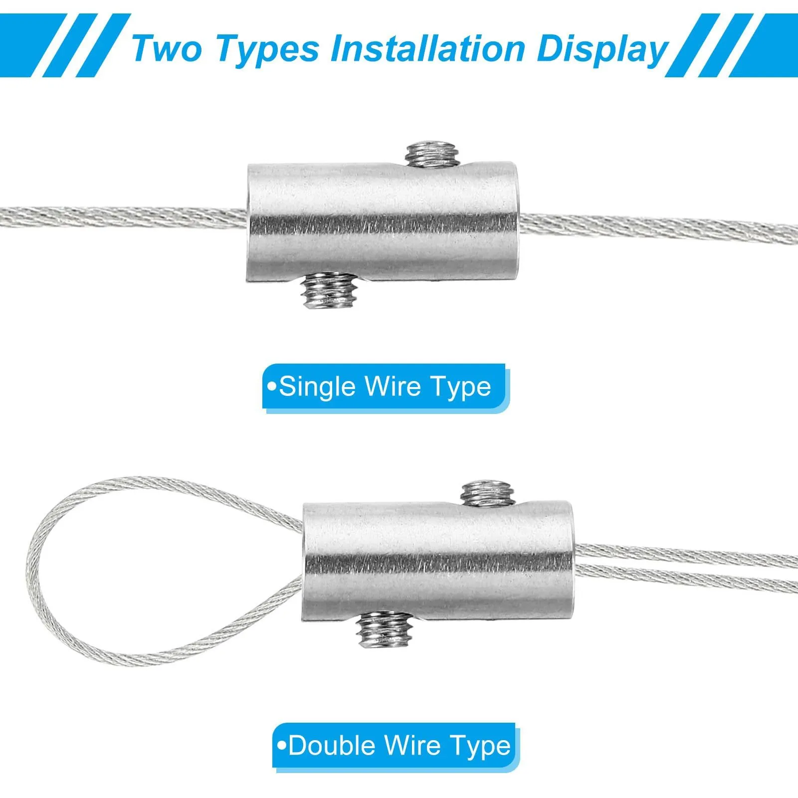 PATIKIL 4 mmホール ワイヤーロープクリップセット 2個 304ステンレス鋼 二重穴 ロックケーブルクランプクリップ M4六角ネジスパナ付き ケーブル継手用 シルバー