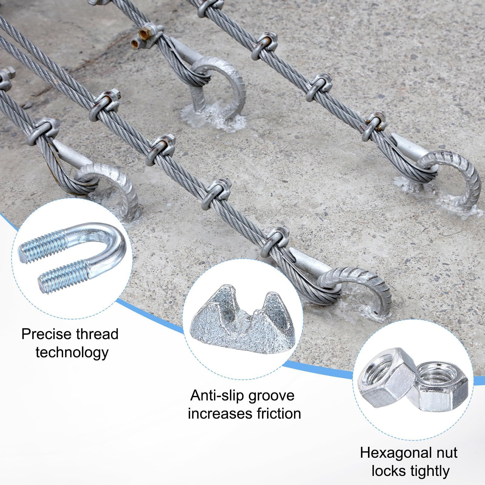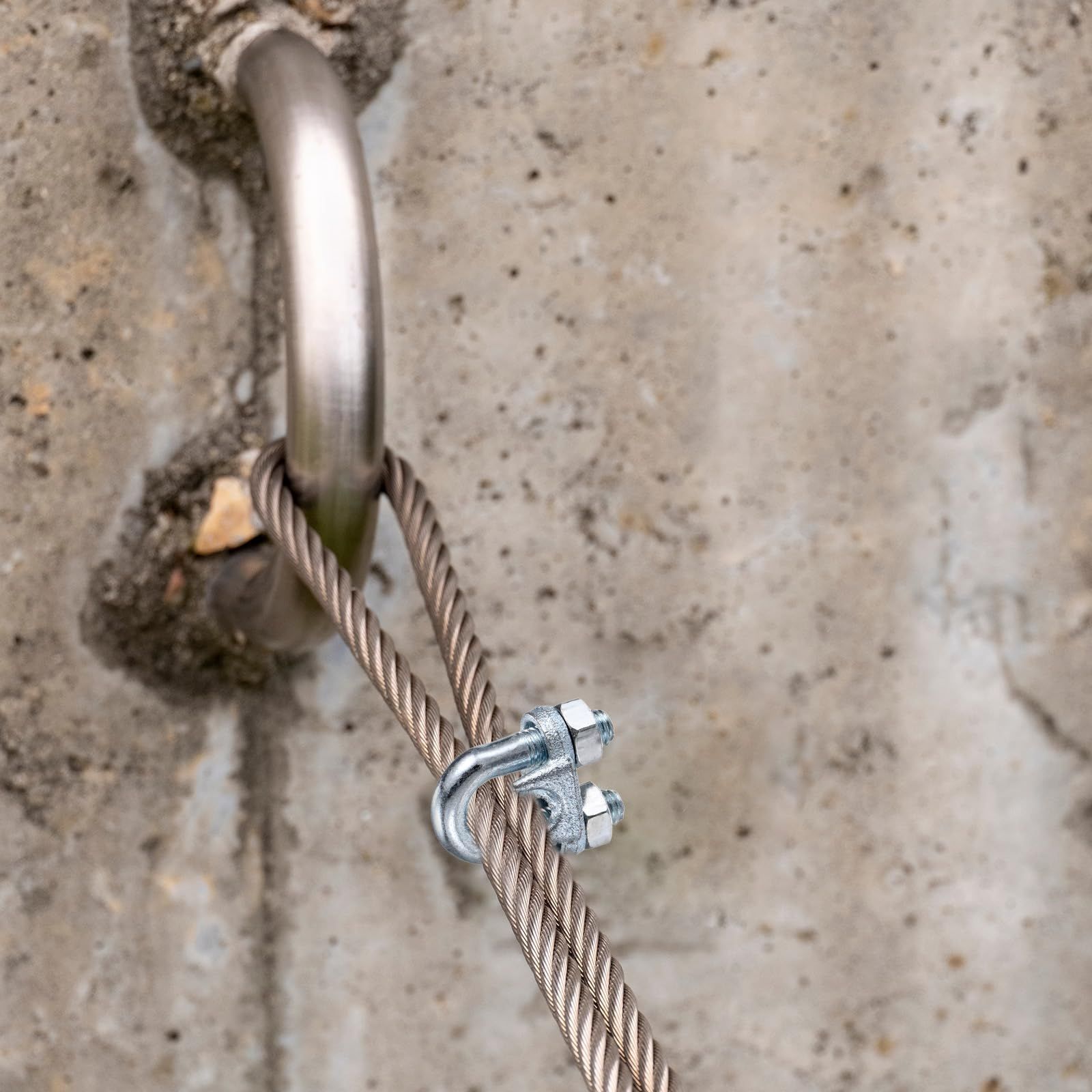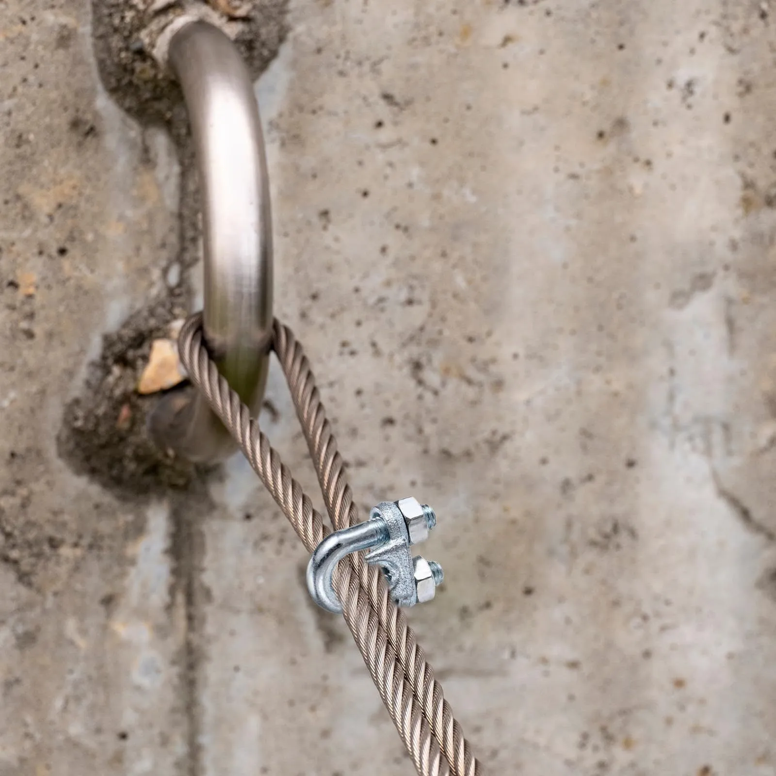 単にナットを緩め、ケーブルをUボルトに挿入し、レンチで端のナットを締めるだけで、簡単に滑りにくいしっかりとしたループを形成できます。