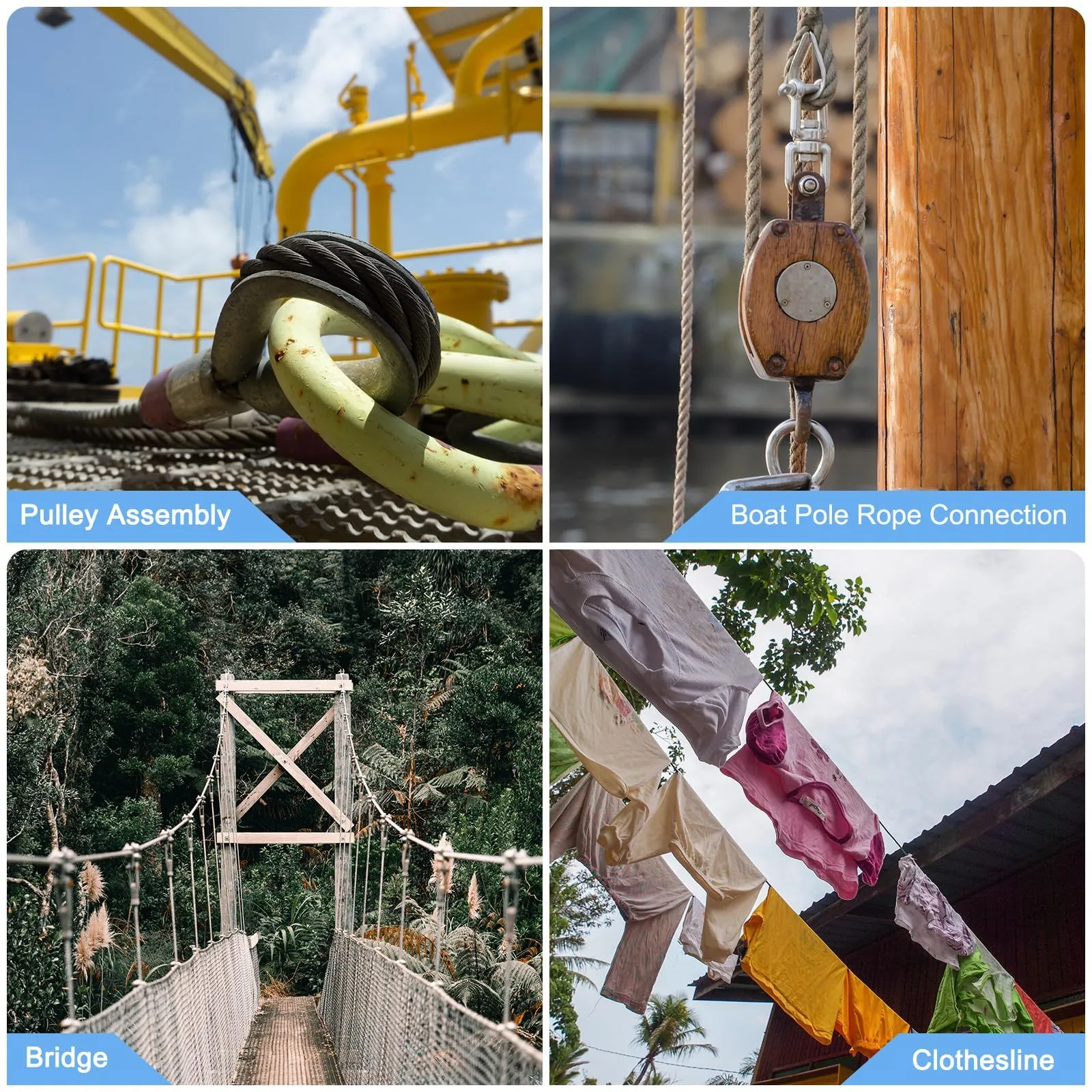 [多目的使用] - ケーブルクランプは、セイルボートのリギング、アンカー、カーテンロープの吊りシステム、庭の植物の登攀ライン、物干し、産業用リギングなど、さまざまなワイヤーロープ接続アクセサリーに適しています